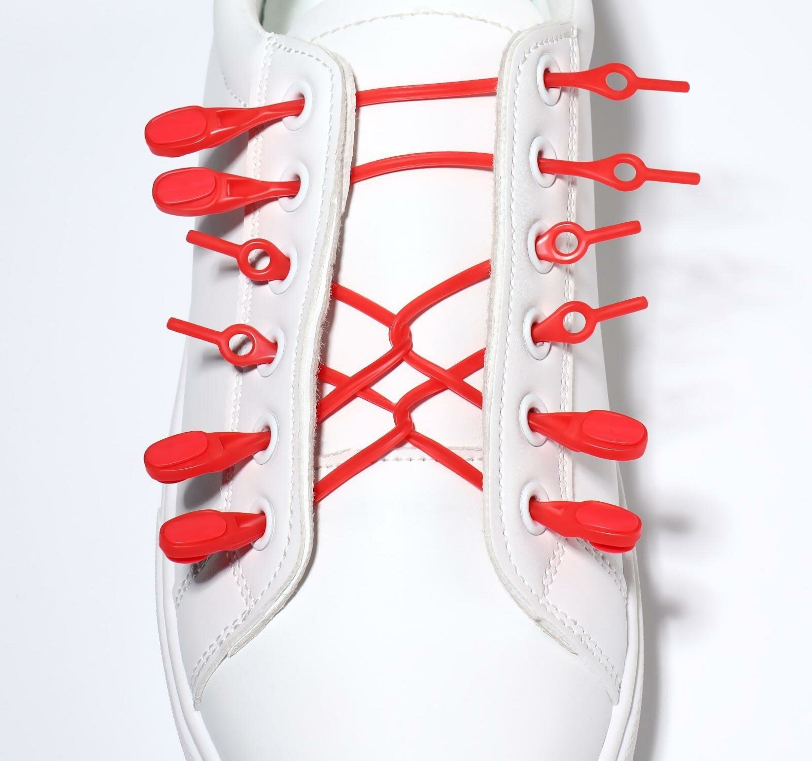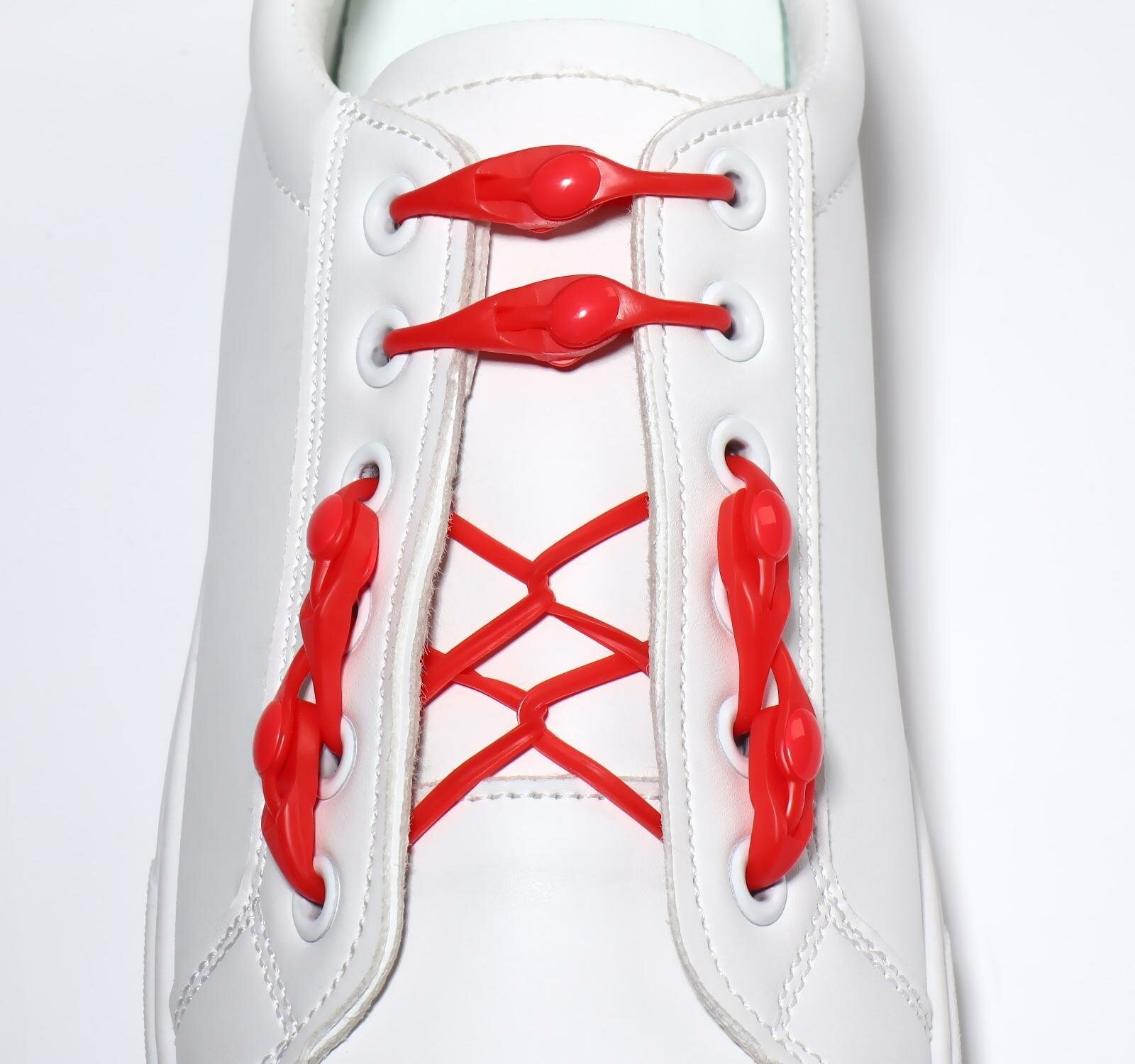 Набор шнурков для обуви, 6 шт, силиконовые, полукруглые, на застёжке, 4 мм, 11 см, цвет красный, 4 штуки