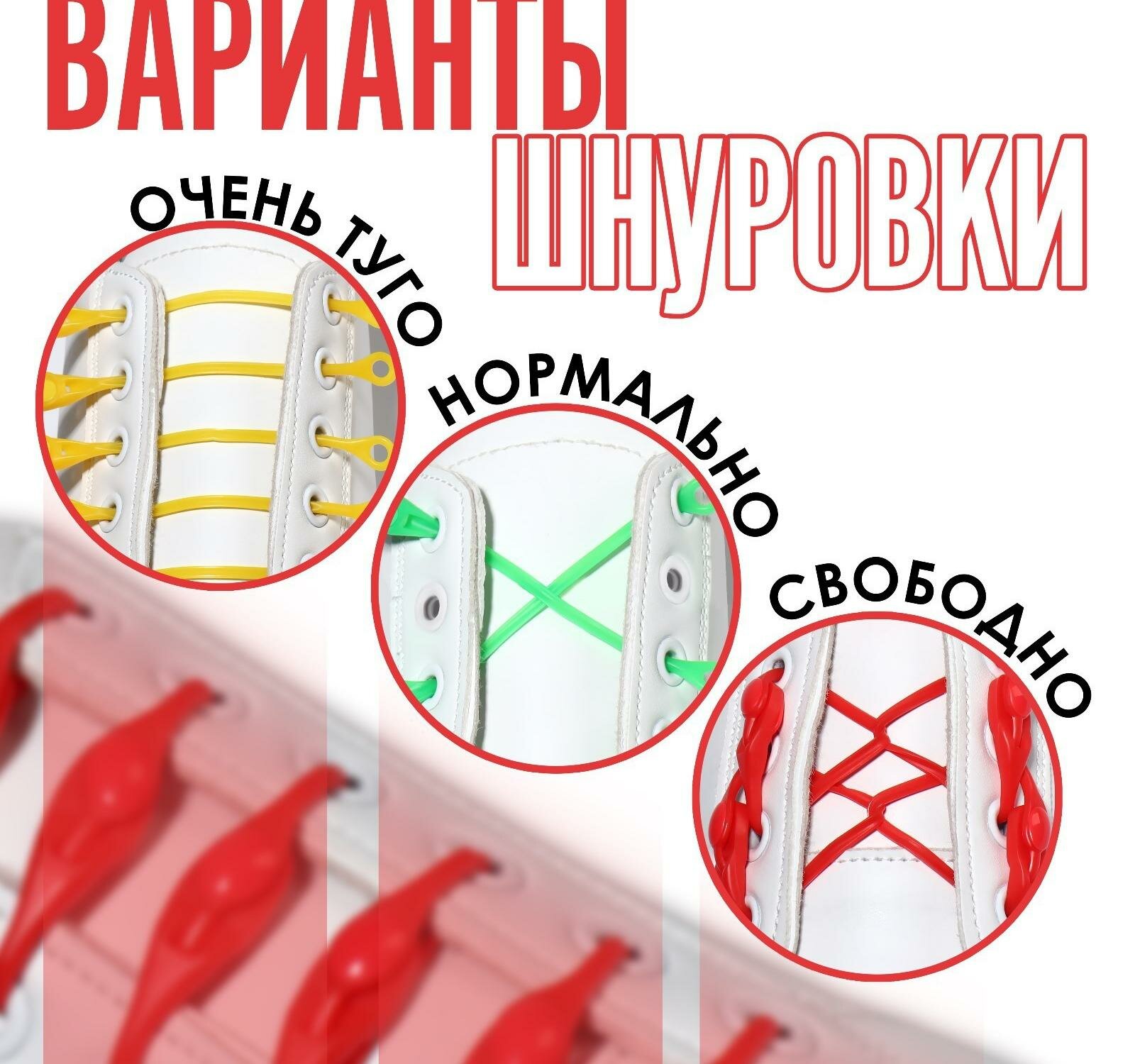 Купить Набор шнурков для обуви, 6 шт, силиконовые, полукруглые, на застёжке, 4 мм, 11 см, цвет красный