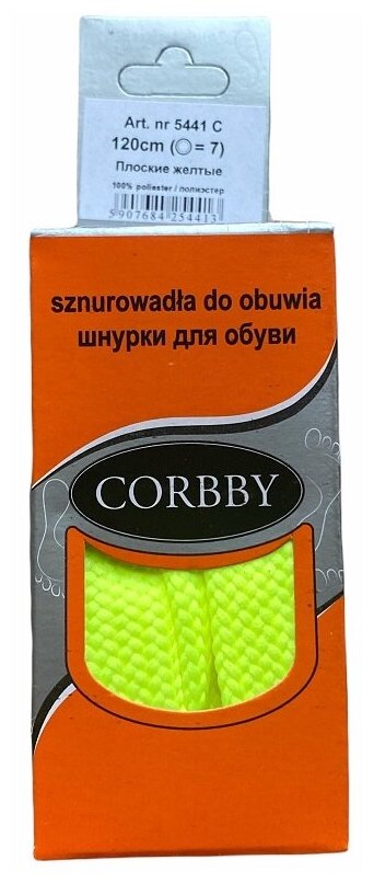 Corbby Шнурки цветные плоские 150 см желтые, 1 уп.