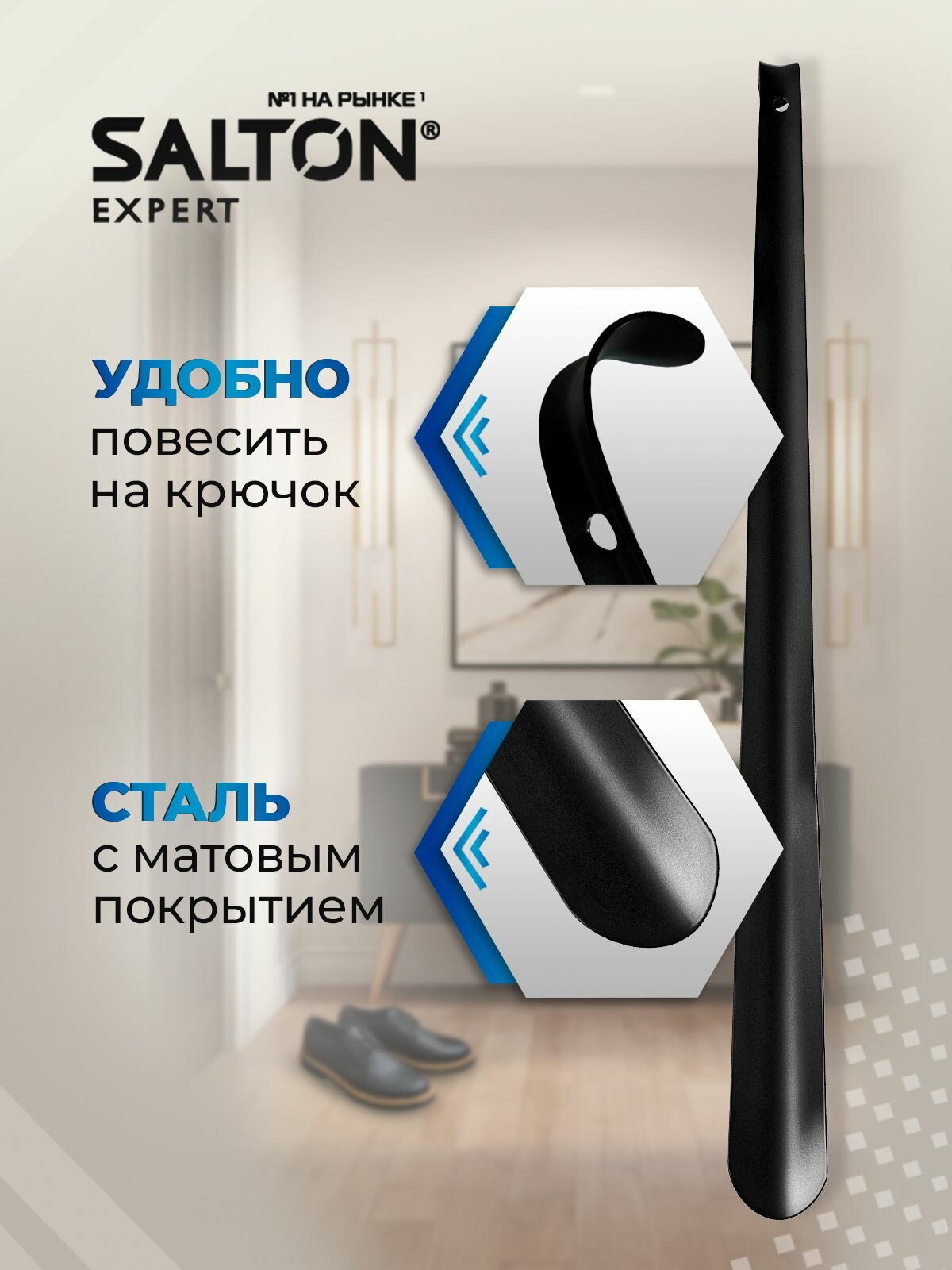 Ложка для обуви, Salton, Рожок для обуви металлический, 2 шт. 70 см интересное: