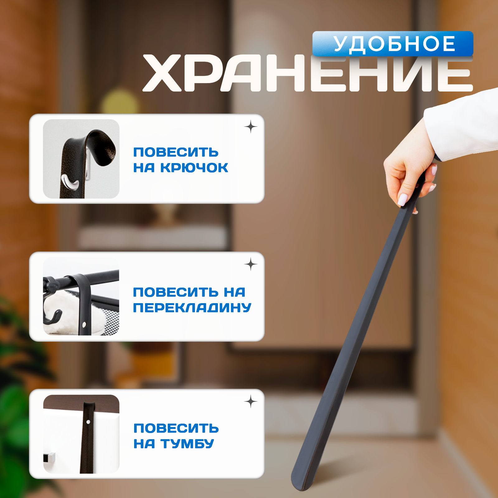 Ложка для обуви, с крючком, 52×4 см интересное: