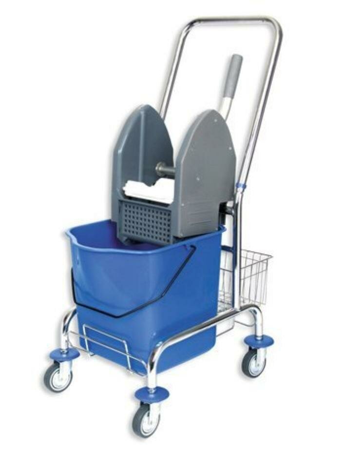 Купить Тележка уборочная ACG 25 л., с отжимом, с корзиной для химии, рама хромированная