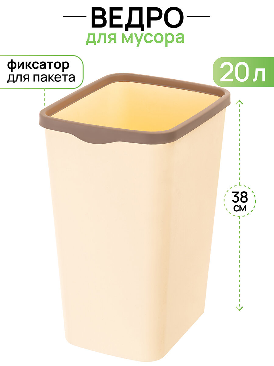 | Дополнительная информация | Ведро для мусора с фиксатором "Тандем" 30х23,2х38,3 см 20 л, слоновая кость/шоколад |