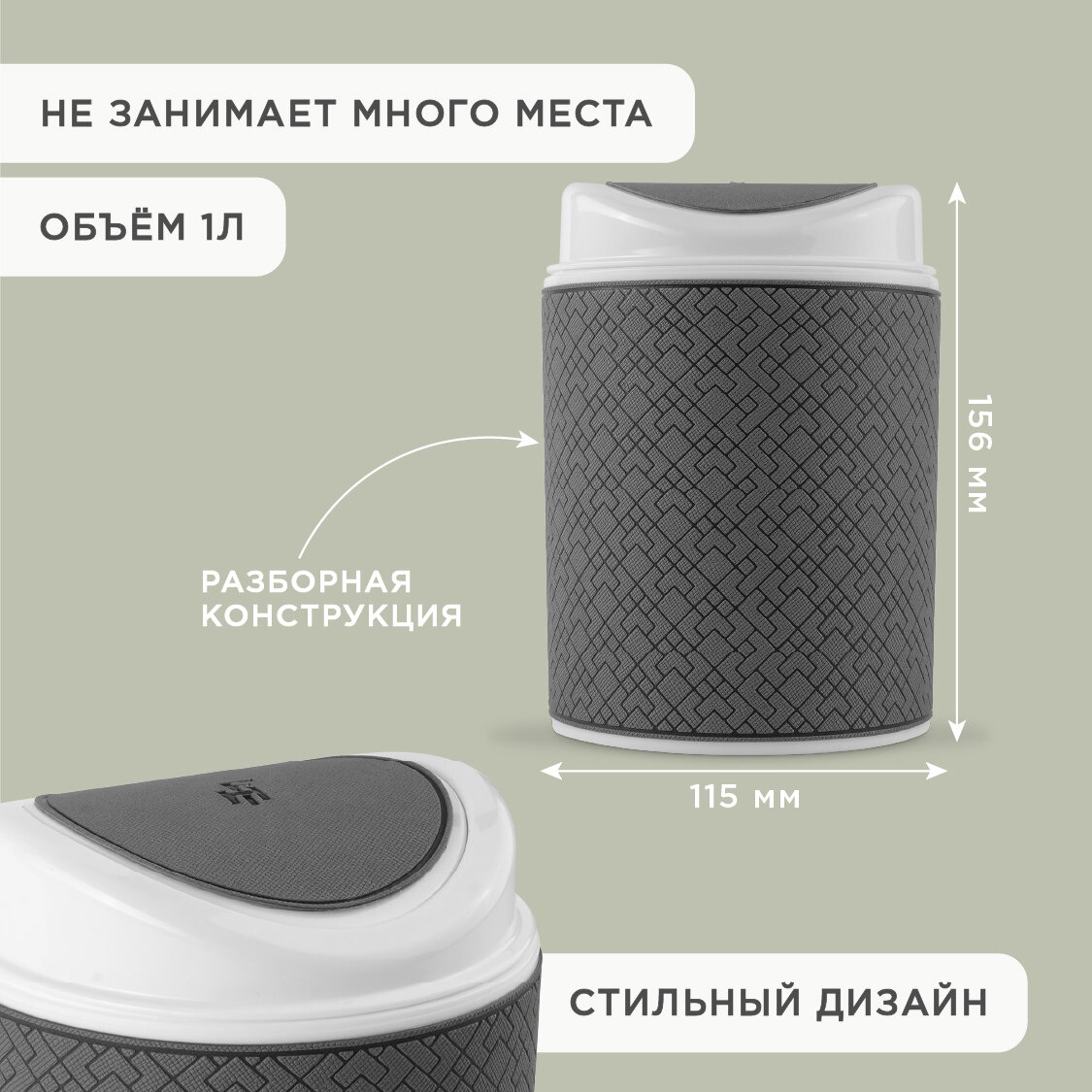 Настольный контейнер для мусора FlexHome, серый, с крышкой, пластик, 1л