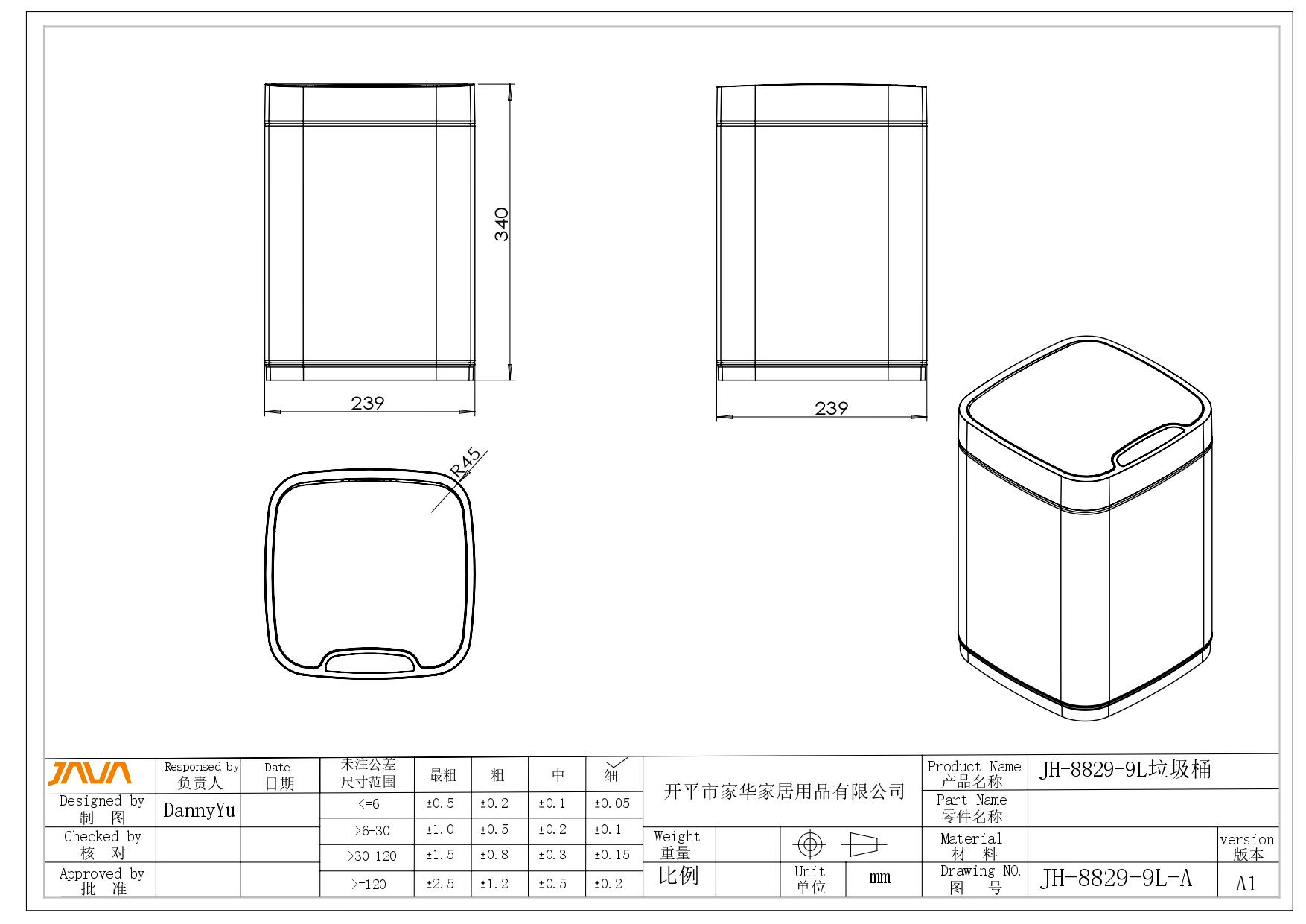Ведро для мусора Java сенсорное S-883B-9LG интересное: