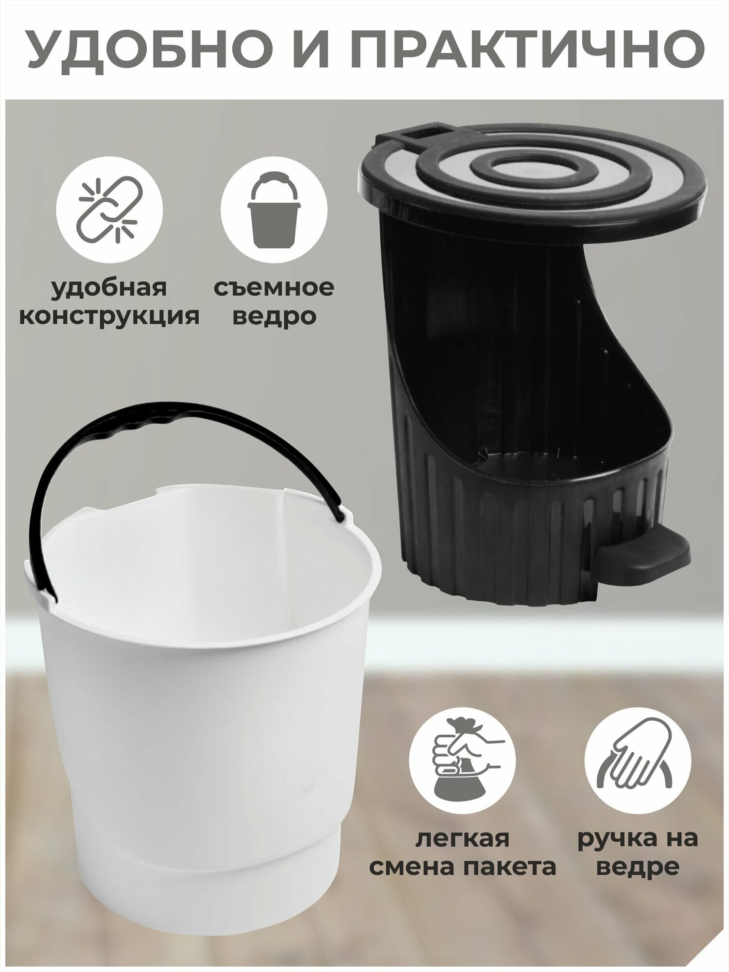 СохранитьМусорное ведро-контейнер 26 л, круглый, педаль, урна пластик Белый DD Style 33х33х39 см интересное:
