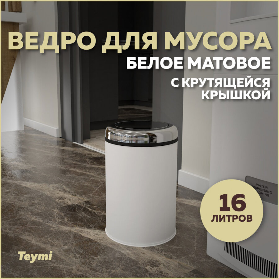 Купить Ведро для мусора с крутящейся крышкой Teymi Solli, 16 литров, белое T90262