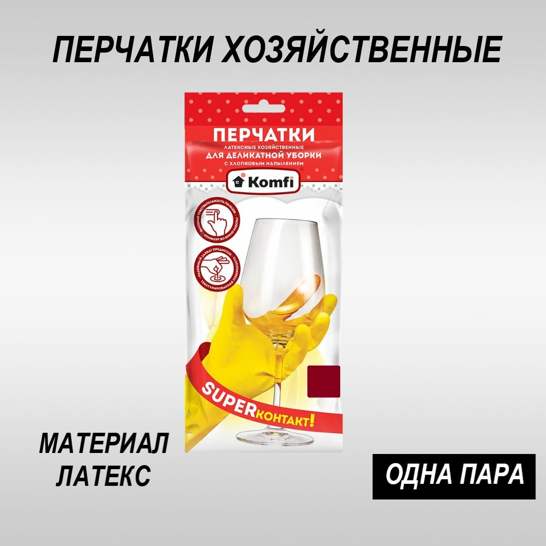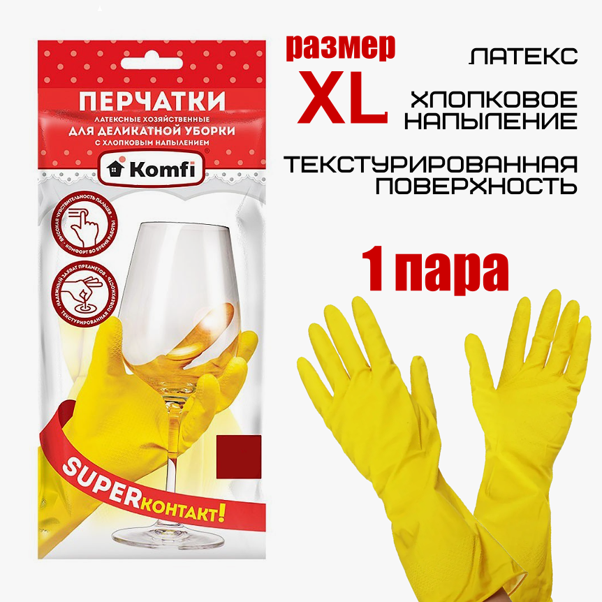 Перчатки хозяйственные латексные "Для деликатной уборки" Komfi с х/б напылением XL желтые DGL019L интересное: