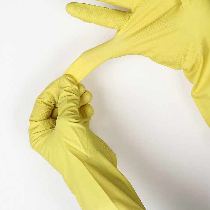 Перчатки хозяйственные латексные "Для деликатной уборки" с х/б напылением, L, желтые, 2 шт/уп, Komfi 1 упакова