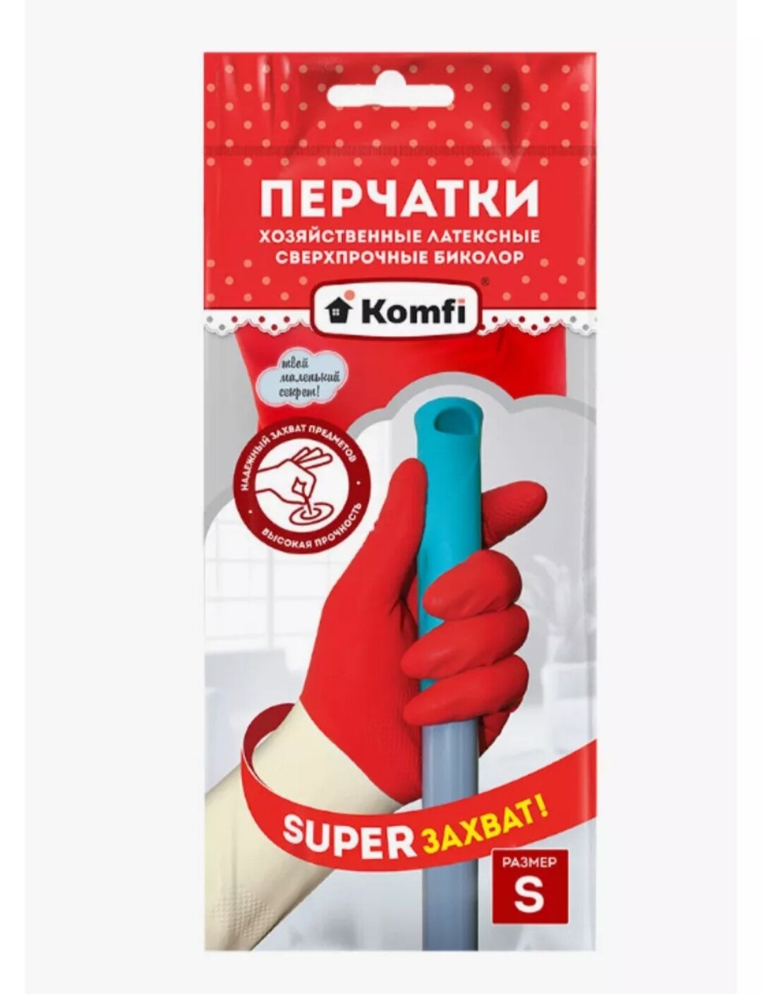 Другие товары 12 Komfi Перчатки латексные двухцветные S (67гр пара) биколор сверхпрочные белый+красный, BICOIRA1, Komfi