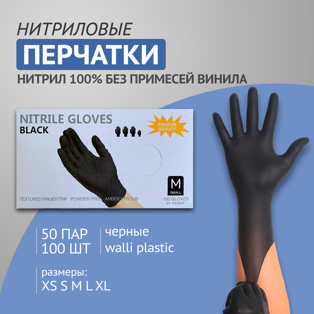 Перчатки нитриловые Wally Plastic размер М чёрные интересное: