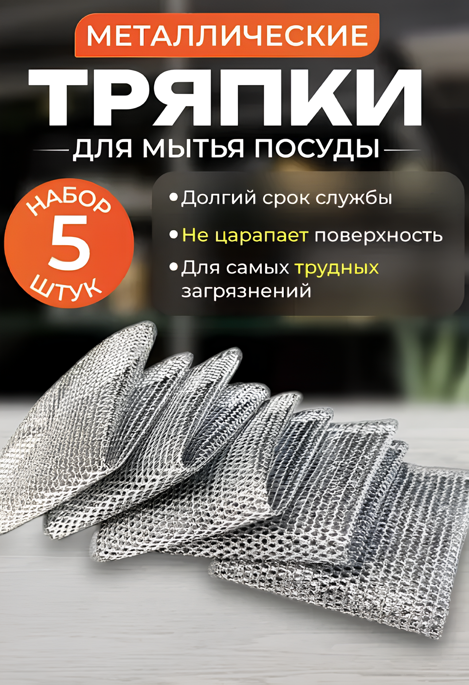 Салфетки для мытья посуды AMG из нержавеющего металла с антибактериальным эффектом (5 штук)