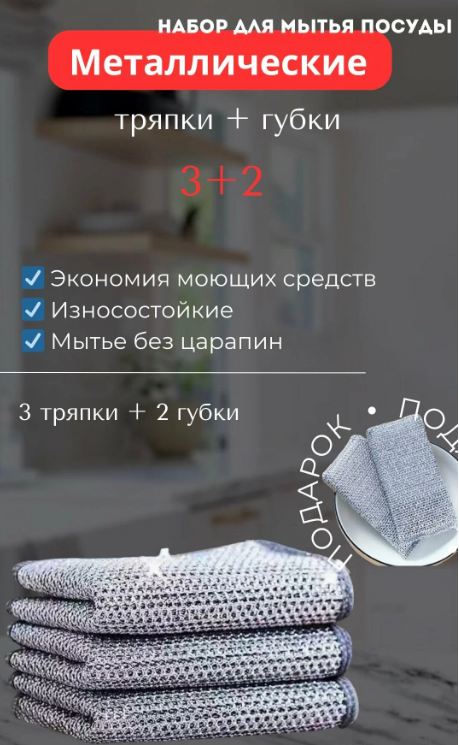 Ниже Вы можете прочитать отзывы на Набор для мытья посуды 2 губки+3 салфетки, ознакомится с подробными характеристиками, посмотреть интересные обзоры и фотографии на Набор для мытья посуды 2 губки+3 салфетки.