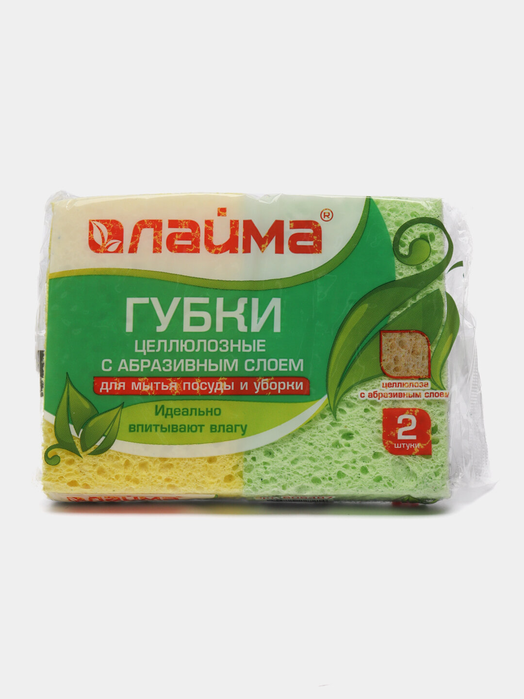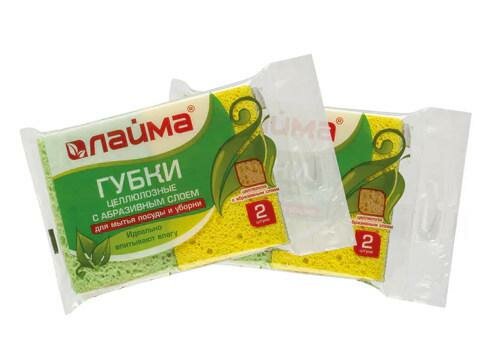 Губки для посуды целлюлозные, Комплект 2х2 шт., губчатые с абразивом, Laima, 880082 интересное: