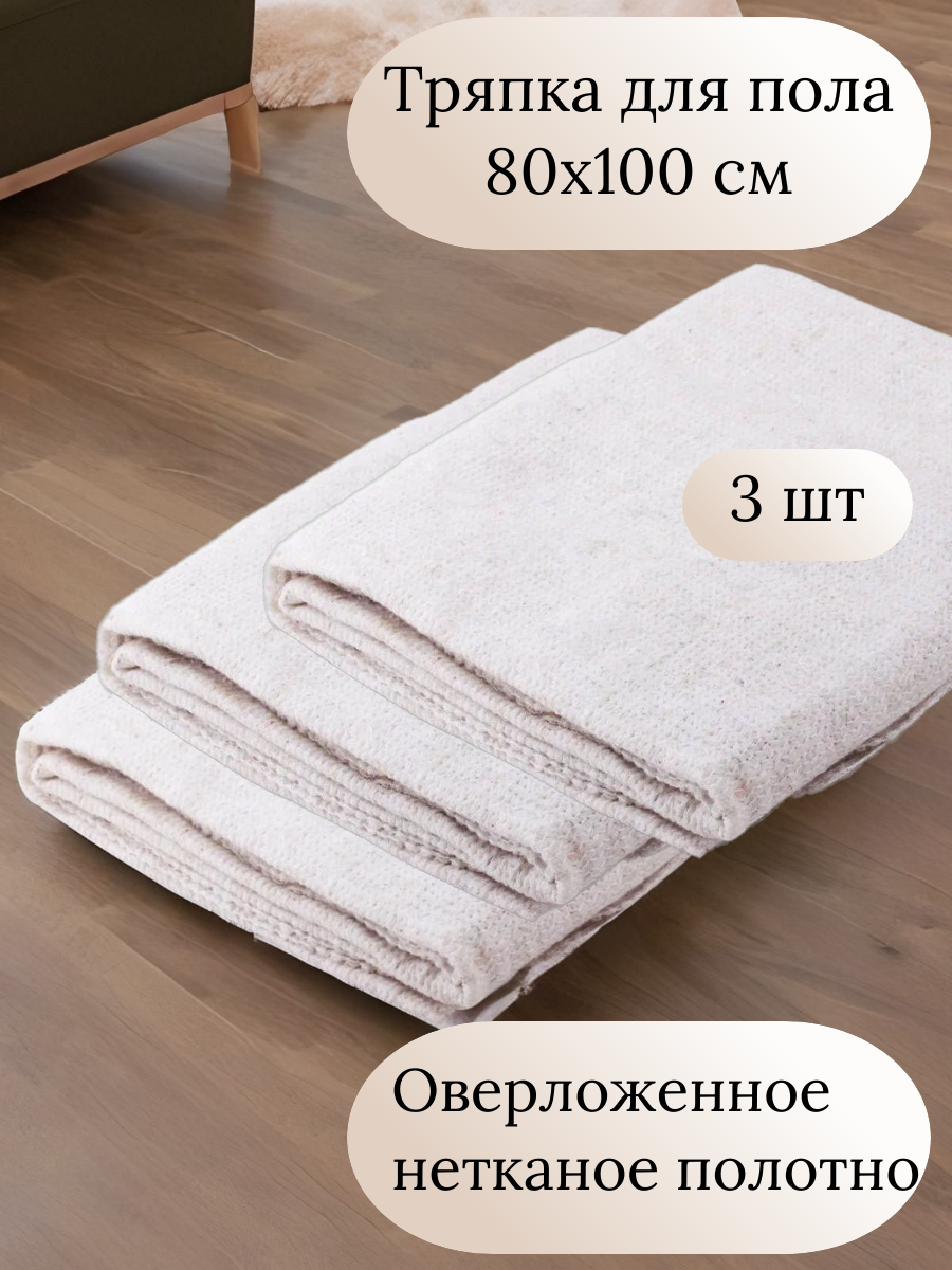 Тряпка для пола 80х100 см, 3 шт, белая оверложенная салфетка для уборки/нетканое полотно/ветошь