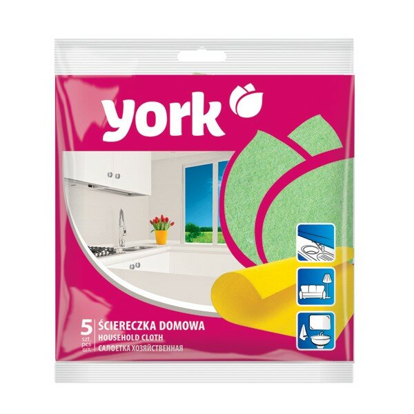 Салфетки вискозные универсальные, 35х35 см, комплект 5 шт, 85 г/м2, YORK, 20020