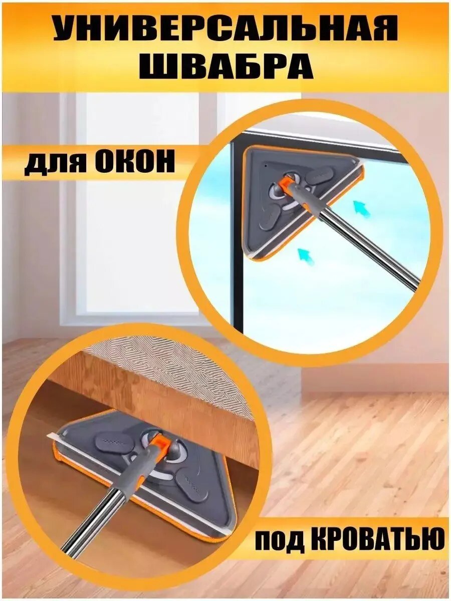 Швабра телескопическая для мытья окон / 2 насадки 26см.*21см.*21см / с водосгоном / длинна 125 см. / Chesnotrade интересное: