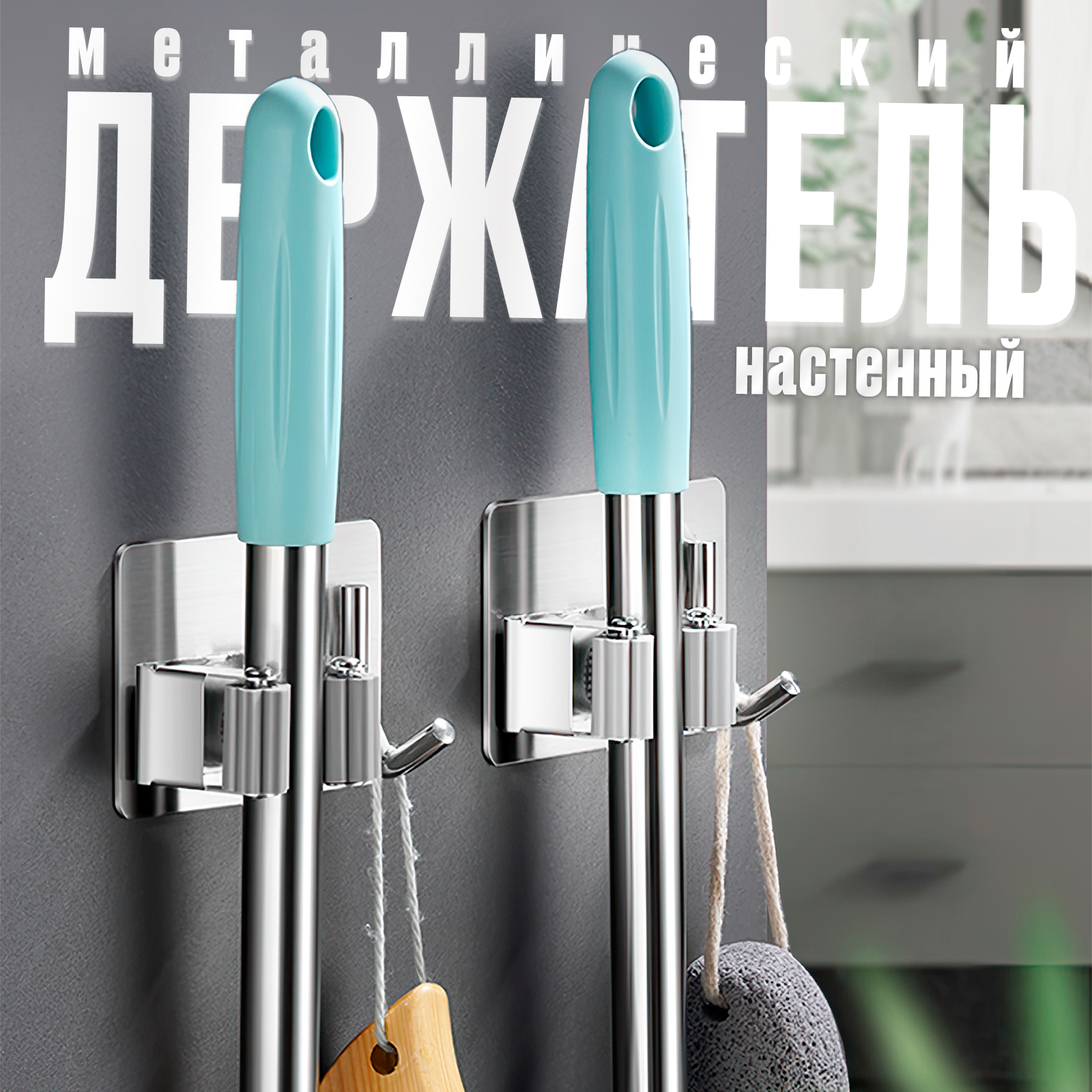 Купить Металлический держатель швабры и полотенец настенный с крючком, нержавеющий, с жидкими гвоздями