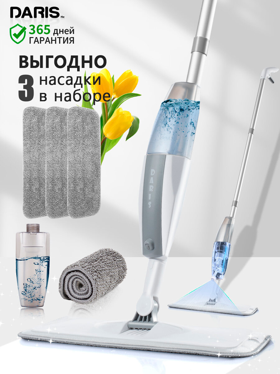 DARIS Швабра с распылителем 300 мл+3 насадки из микрофибры, длина 120 см интересное: