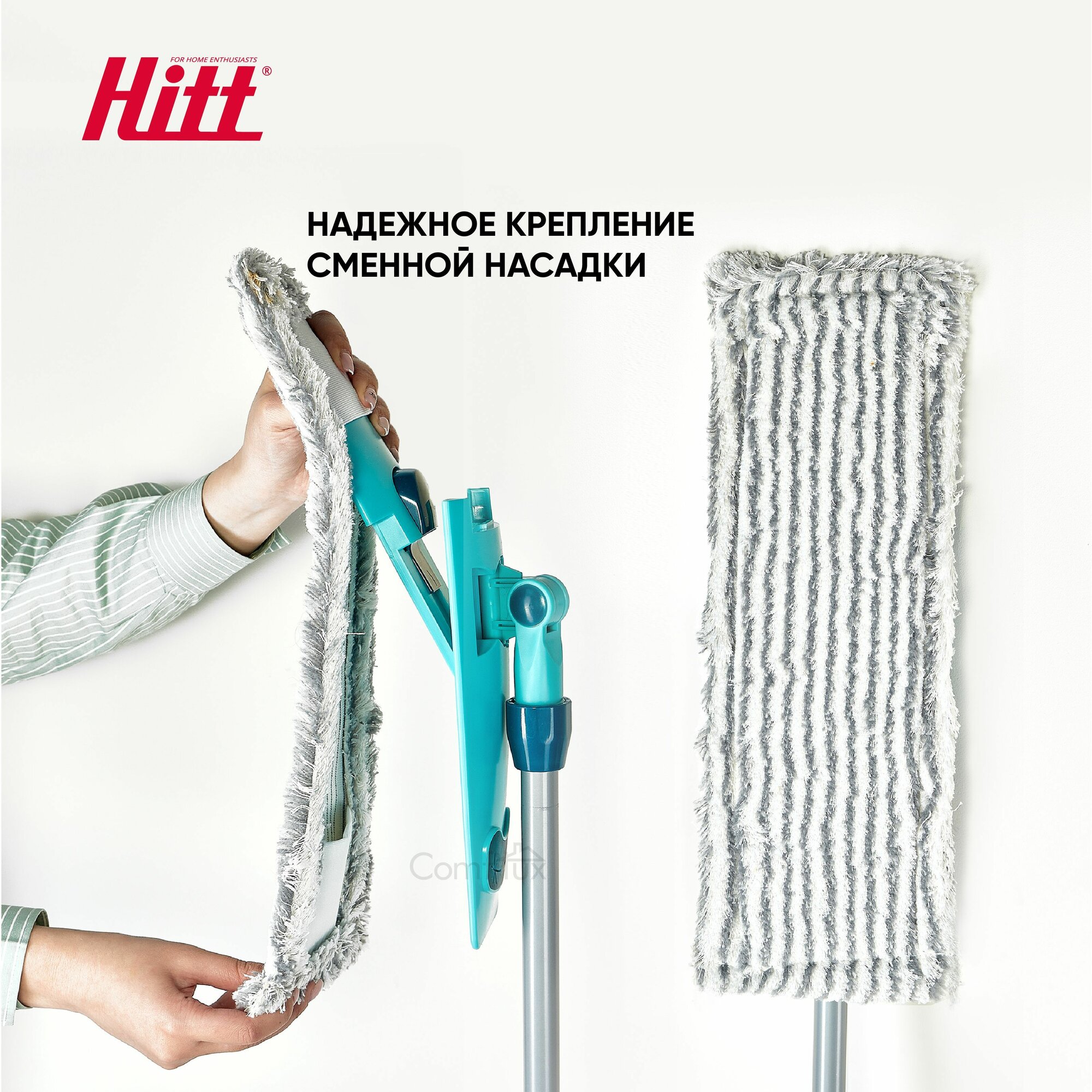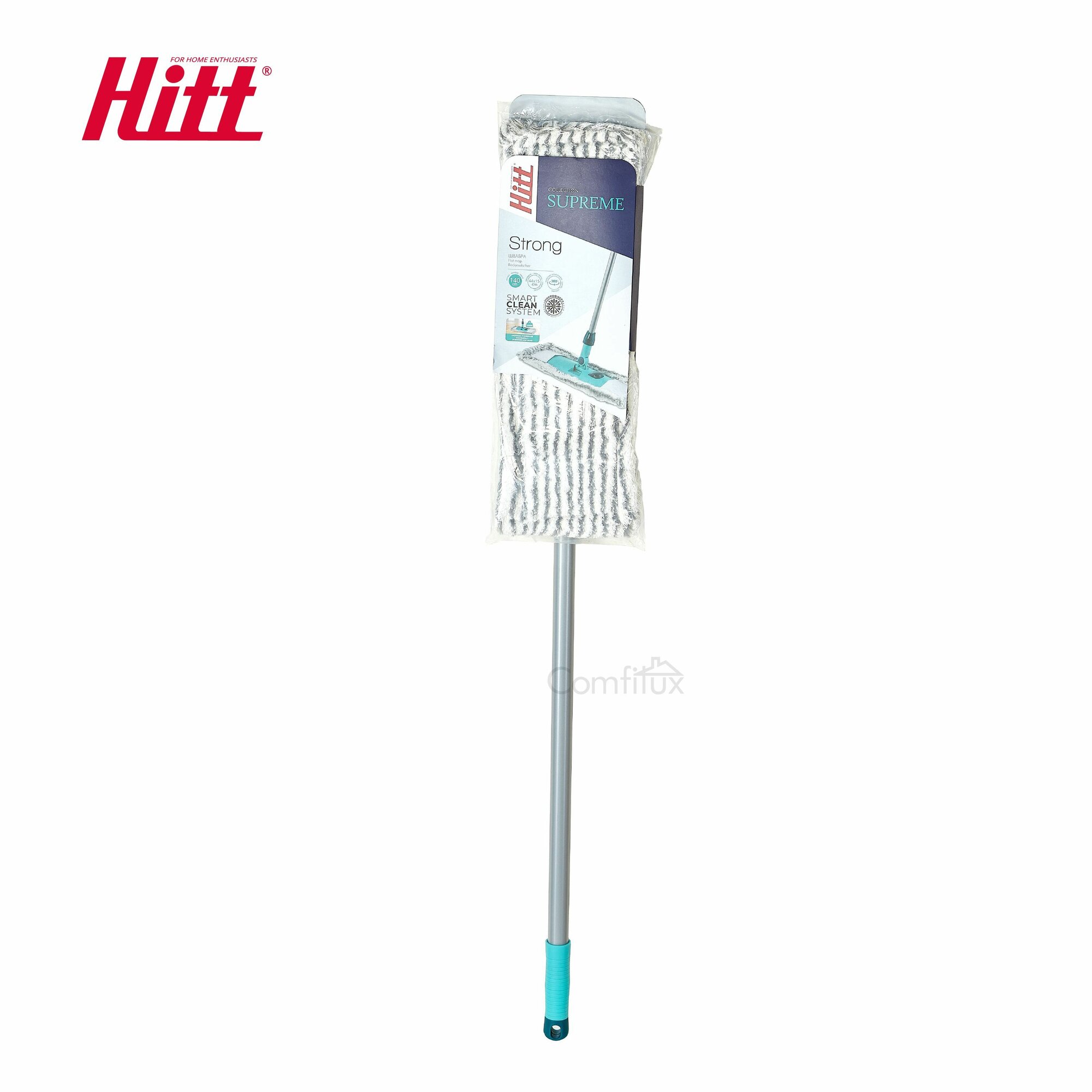 Швабра Hitt Supreme Strong 140см телескоп ручка/увеличенная платформа/насадка из микрофибры 44x15 см