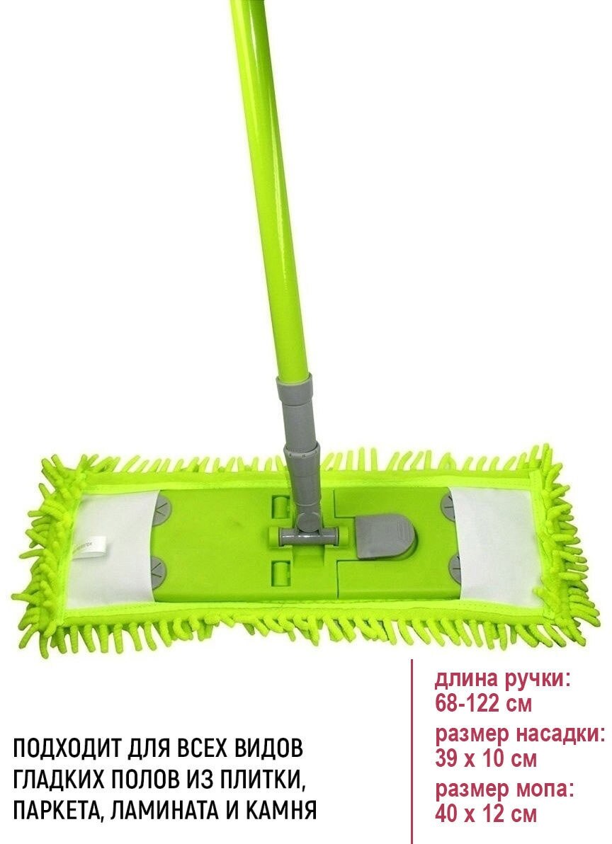 Швабра с микрофиброй с длинным ворсом, флаундер 40х10 см, металлическая телескопическая ручка