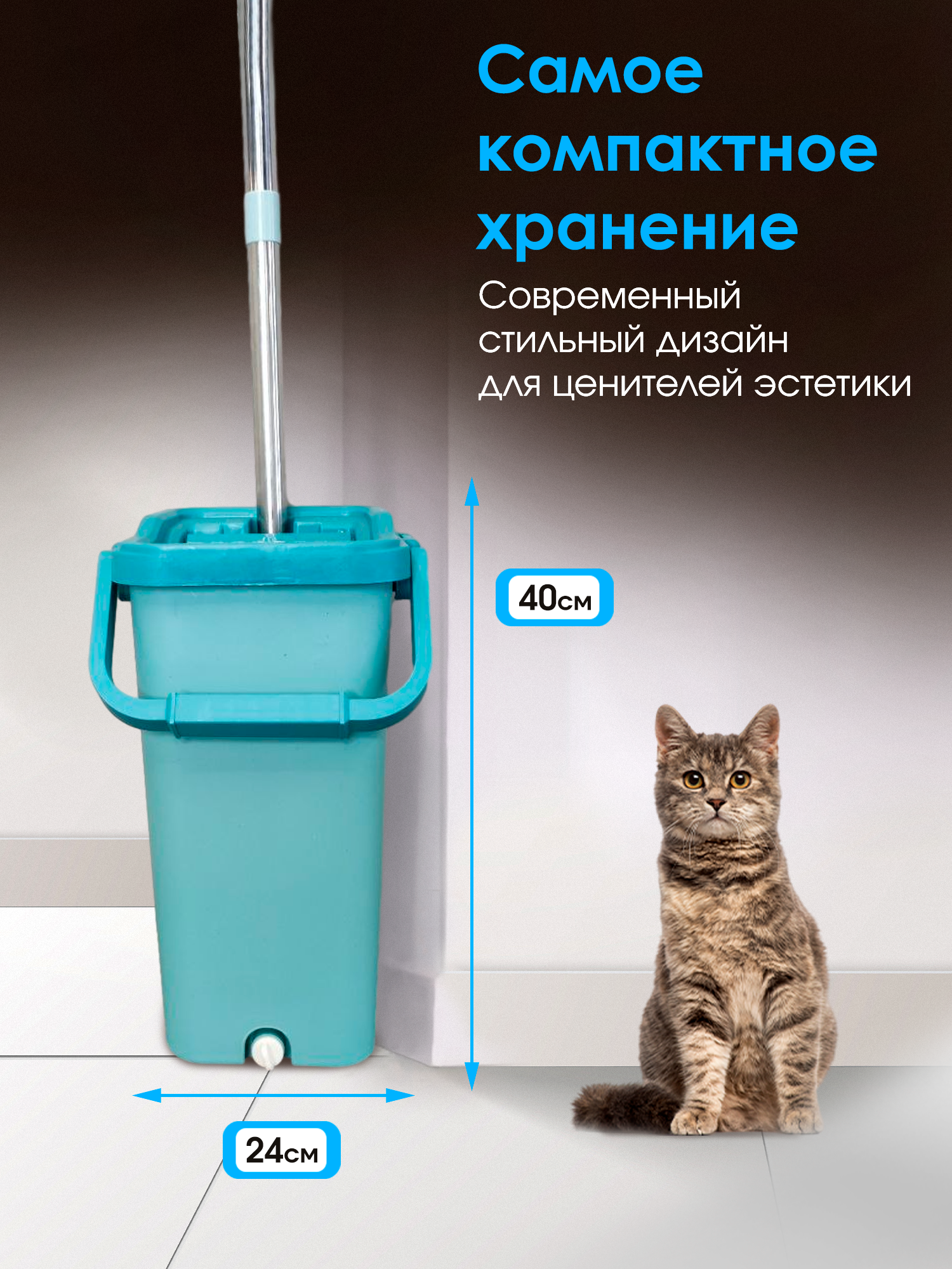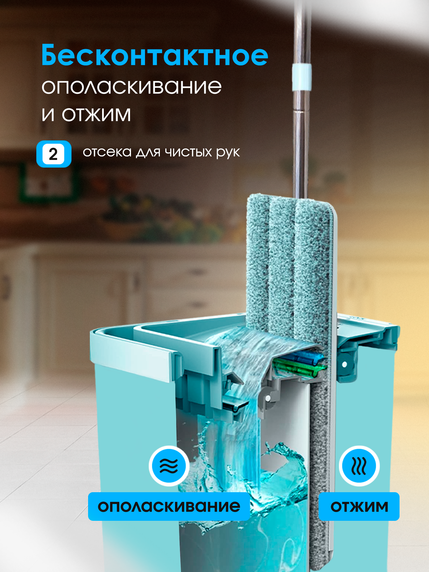 Умная швабра с отжимом и ведром. для мытья пола 10 литров с насадками для швабры 4 шт интересное: