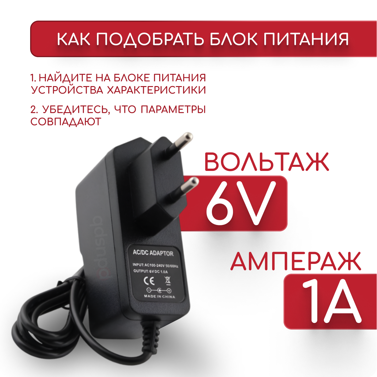 | Комплектация | Блок питания черный 6V 1A 5.5х2.5 мм с зажимом - 1 шт |