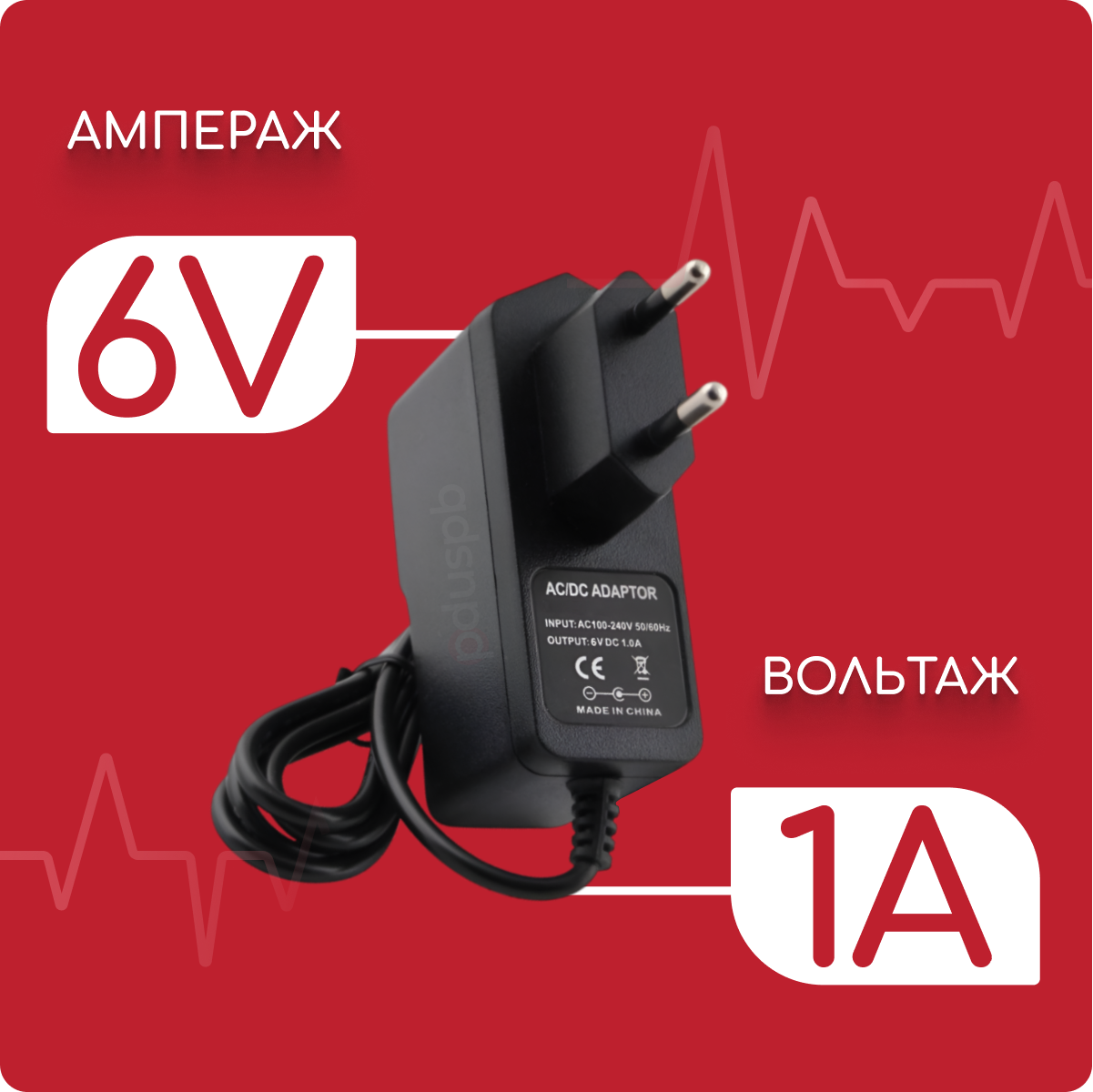 | Комплектация | Блок питания черный 6V 1A 5.5х2.1 мм с зажимом - 1 шт |