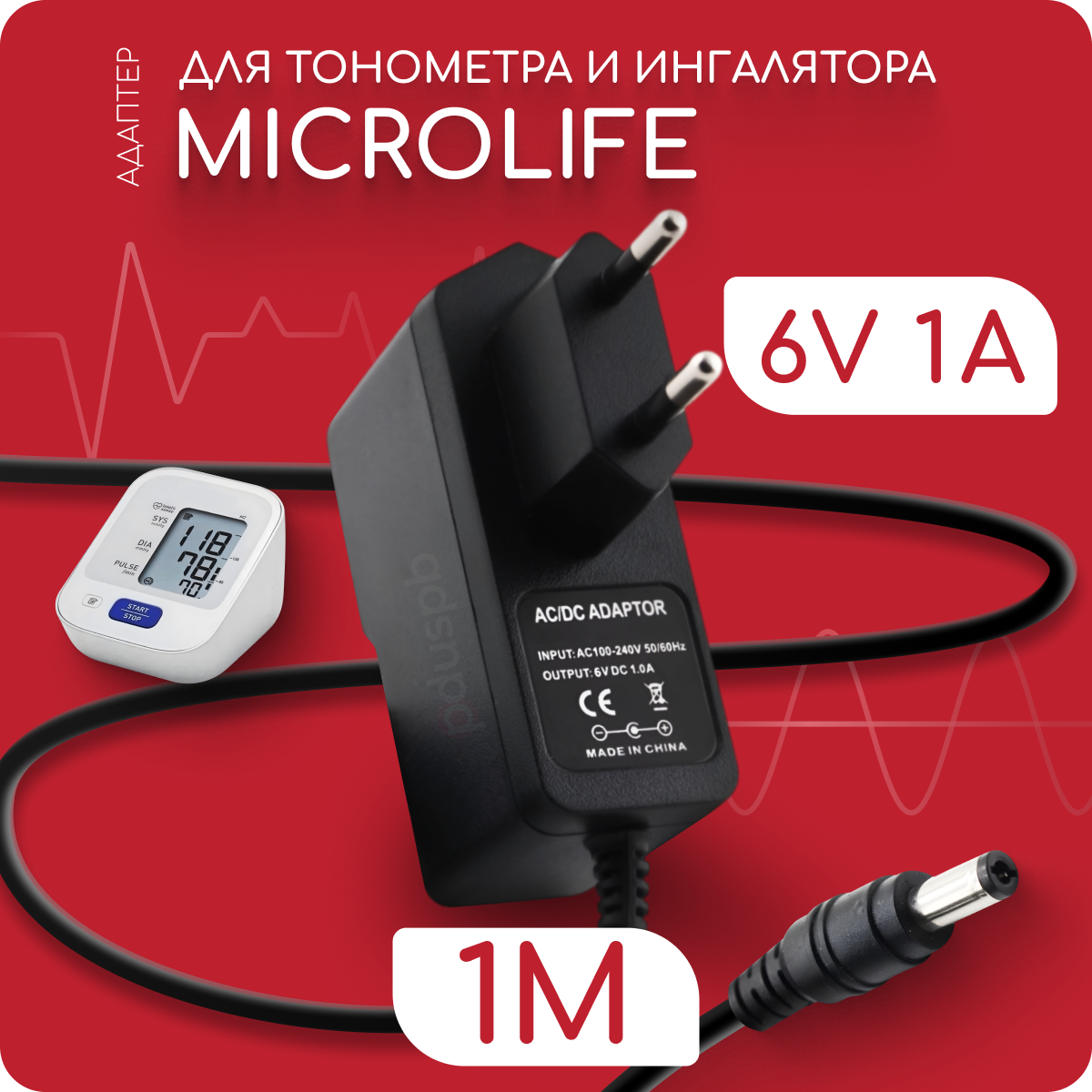 Адаптер для тонометра и ингалятора Microlife 6V 1A 5.5х2.1 мм с зажимом интересное: