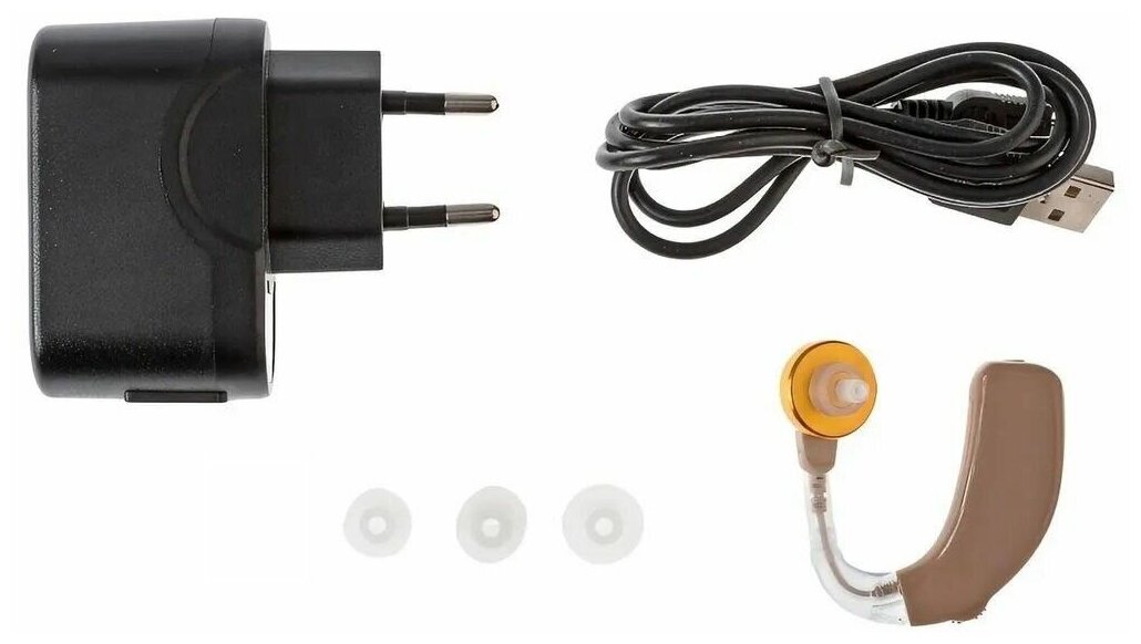 | Подробная комплектация | слуховой аппарат; провод USB зарядки; блок питания для зарядки; ушные вкладыши разных размеров 3 шт.; руководство пользователя на английском языке |