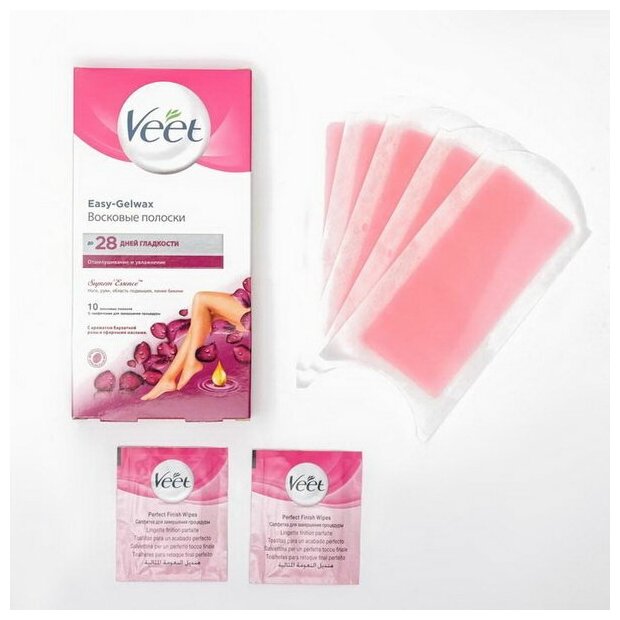 Восковые полоски Veet с ароматом бархатной розы и эфирными маслами Easy Gel-wax 10 шт./упак.