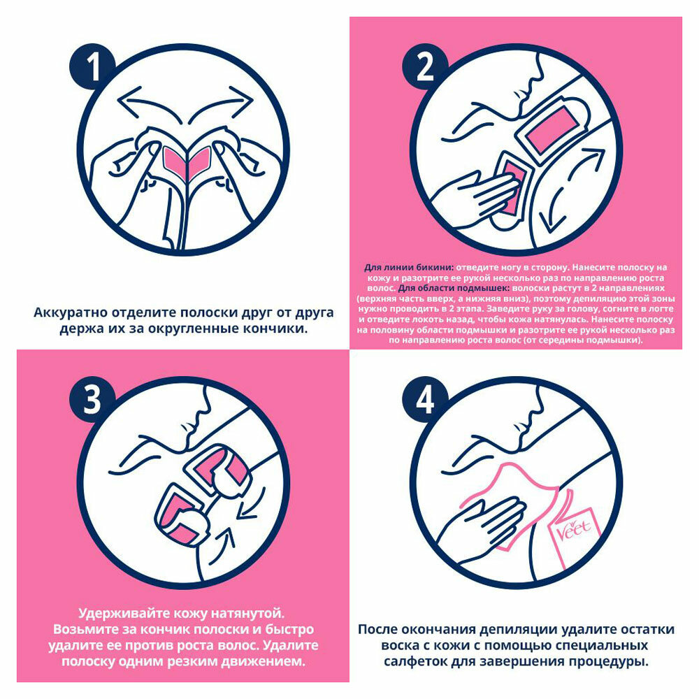 Вит / Veet Easy Gelwax - Восковые полоски для бикини и подмышек для чувствительной кожи, 14 шт интересное: