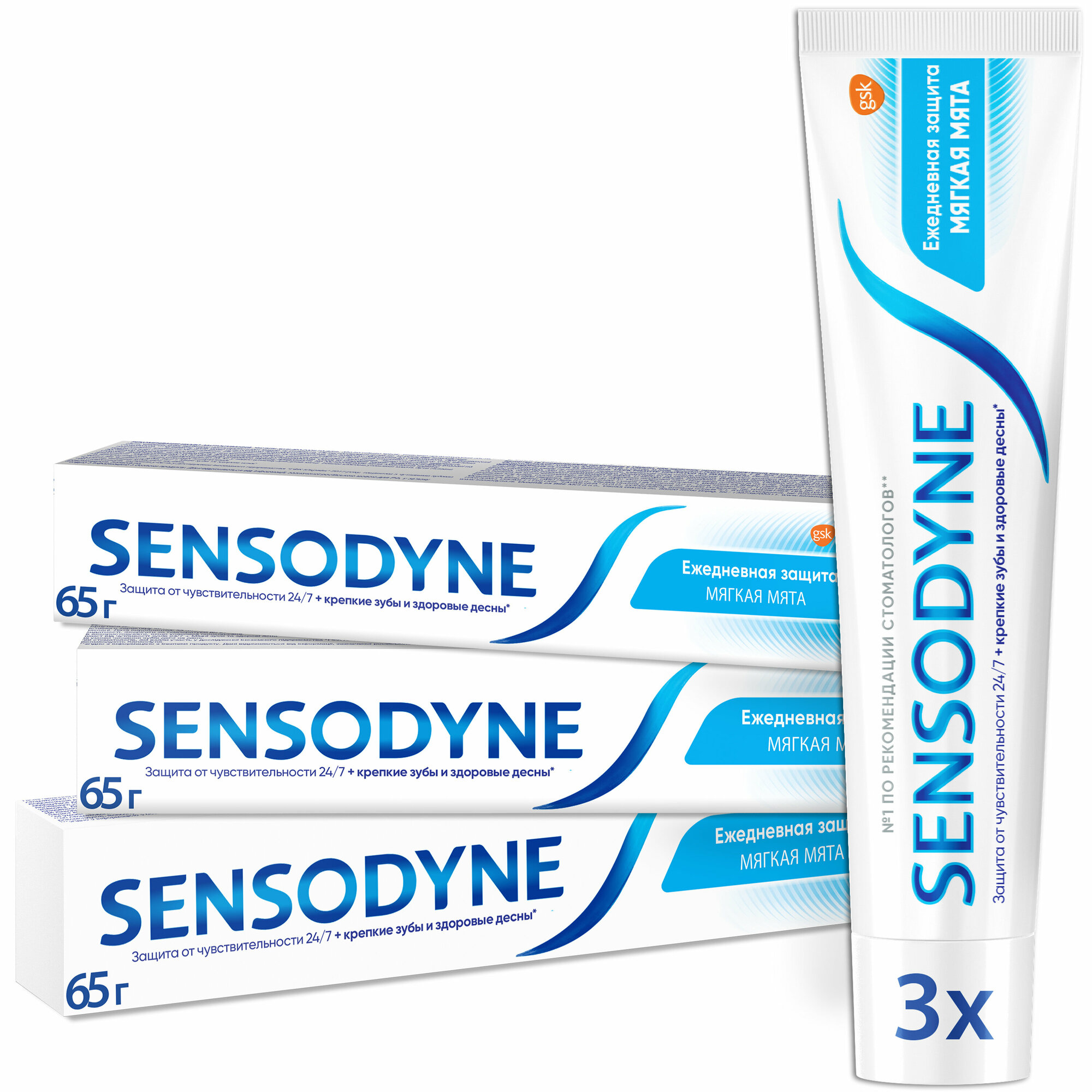 Купить Зубная паста Sensodyne Ежедневная Защита Мягкая мята с фтором, для снижения чувствительности зубов и защиты от кариеса, 65 г 3 шт
