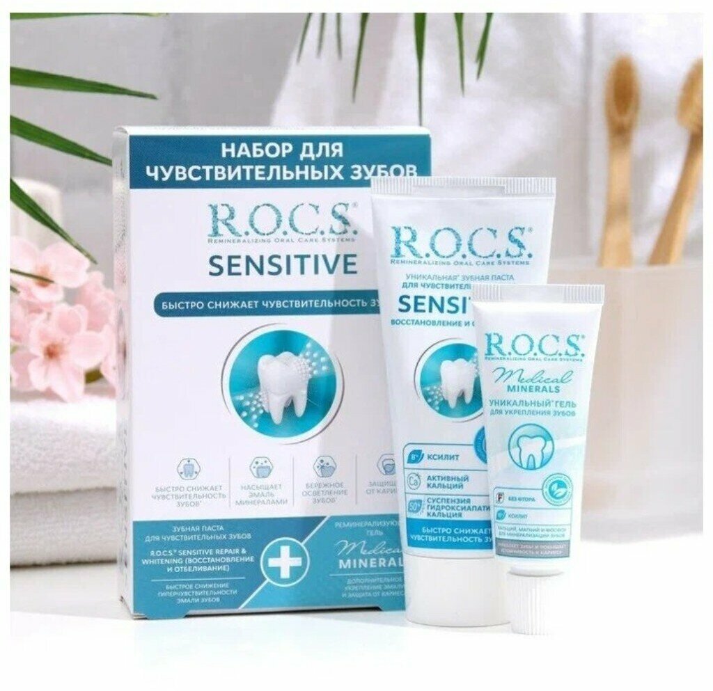 Набор R.O.C.S. для чувствительных зубов Sensitive Repair & Whitening: зубная паста 64 г + реминерализующий гель 25 г интересное:
