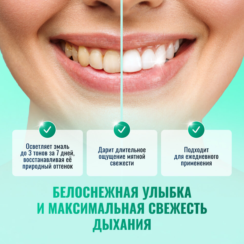 | Назначение | антибактериальный эффект / от кариеса / отбеливание / свежее дыхание / удаление зубного налета / укрепление эмали |