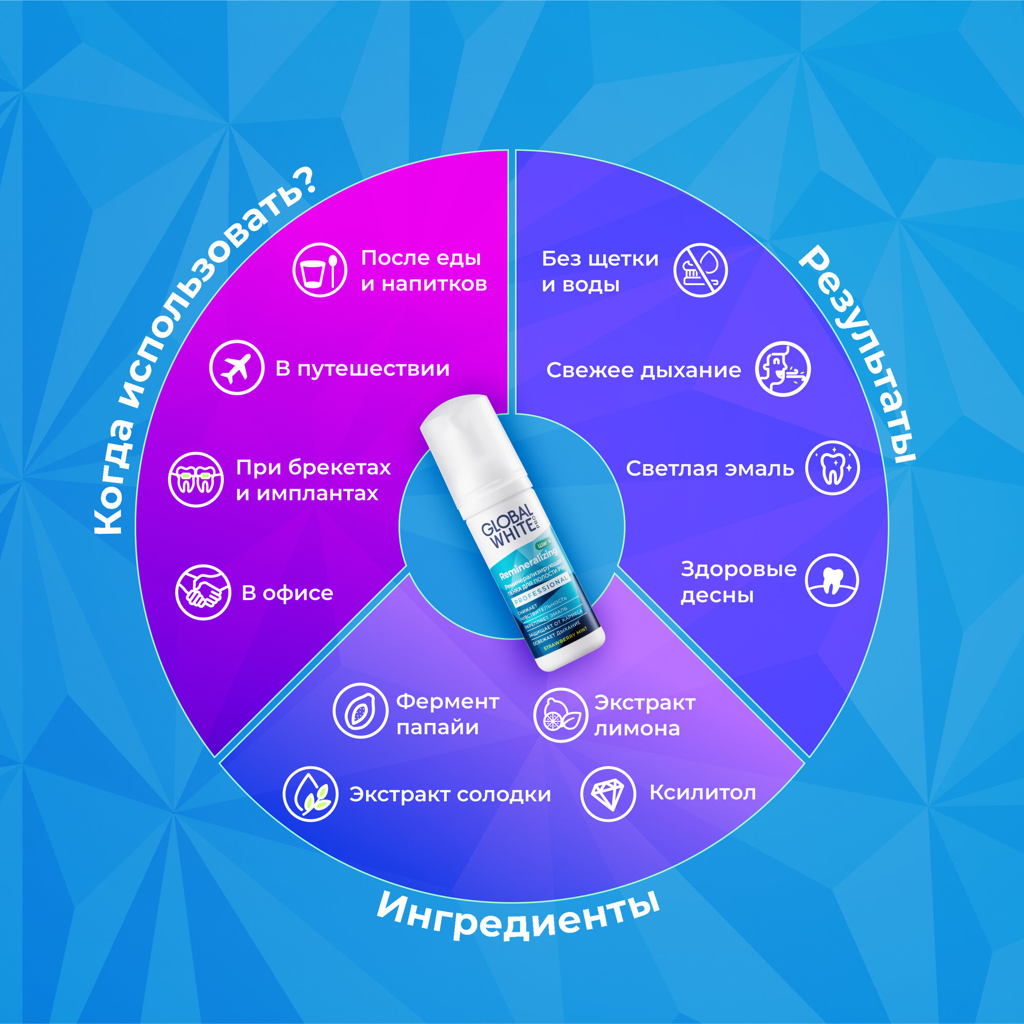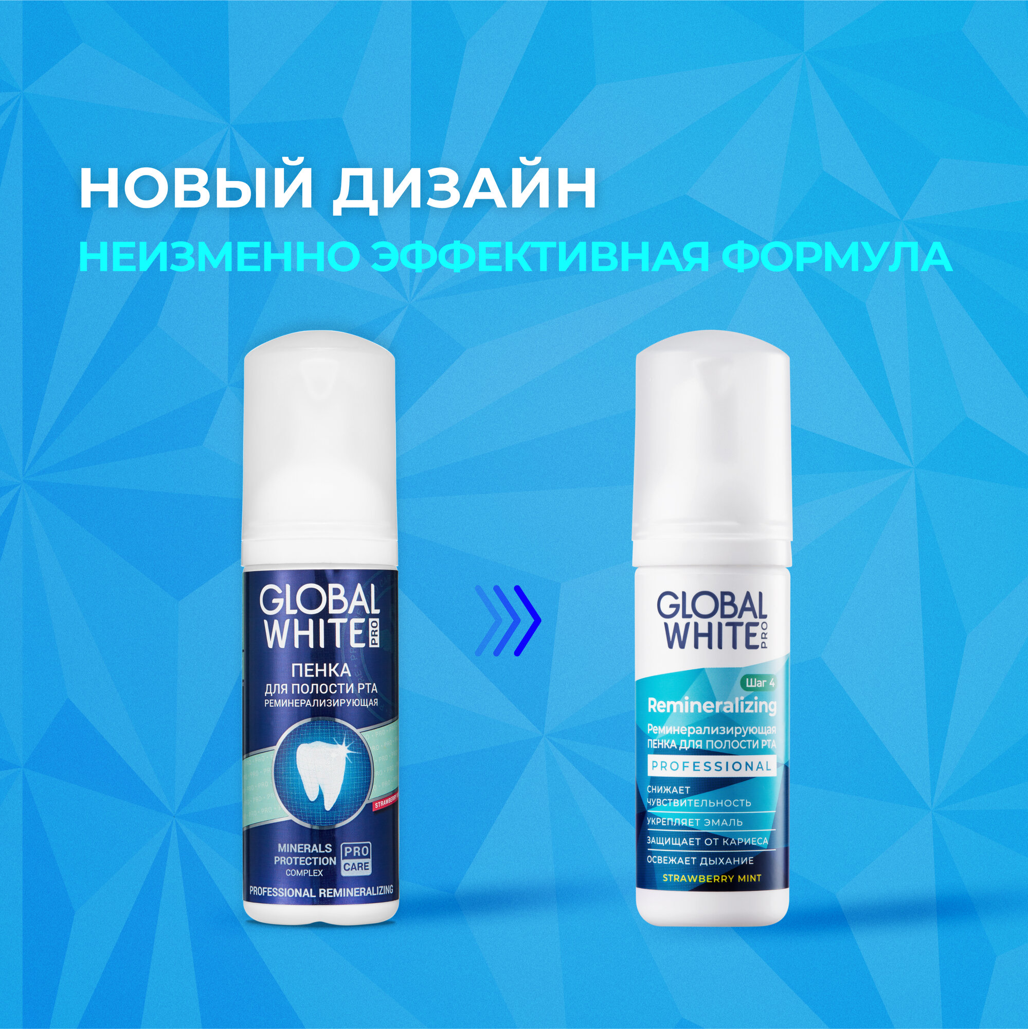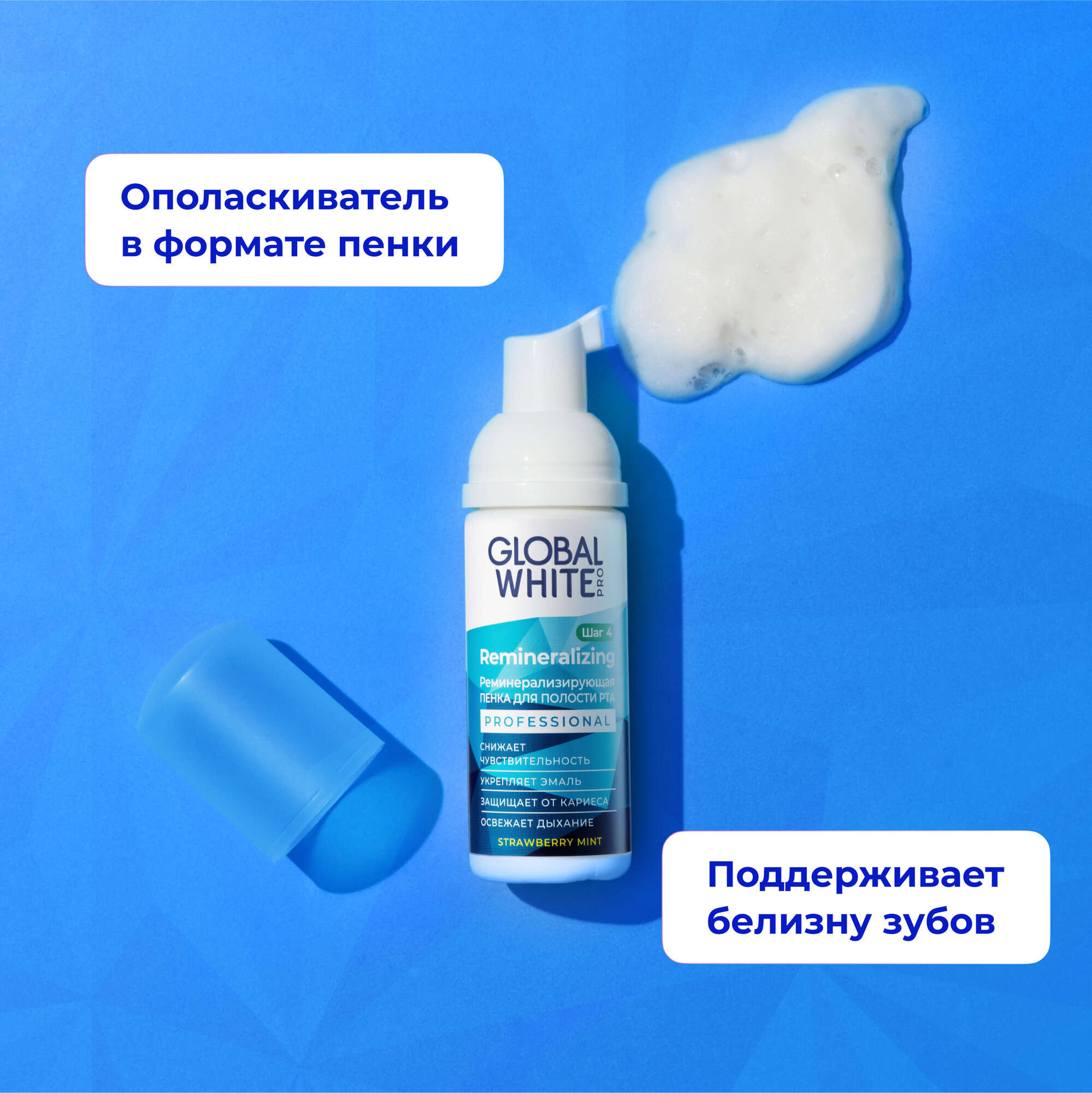 Ополаскиватель / Пенка для полости рта реминерализирующая GLOBAL WHITE PRO / Professional Remineralizing / 50 мл интересное: