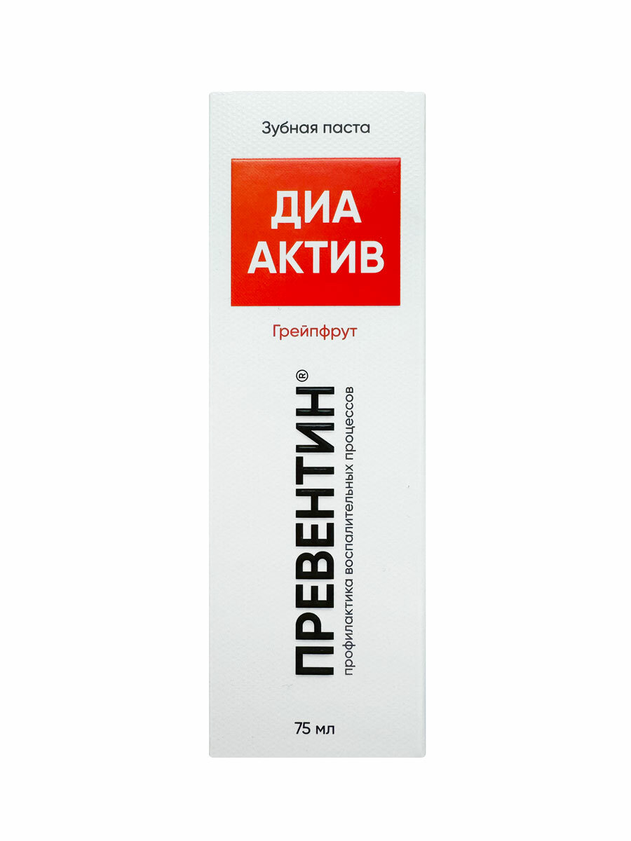Зубная паста Превентин ДИА Актив профилактика воспалительных процессов, грейпфрут, 75 мл интересное: