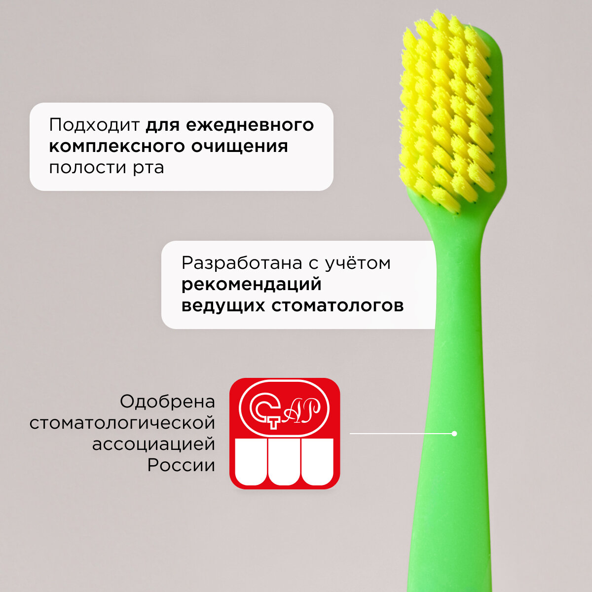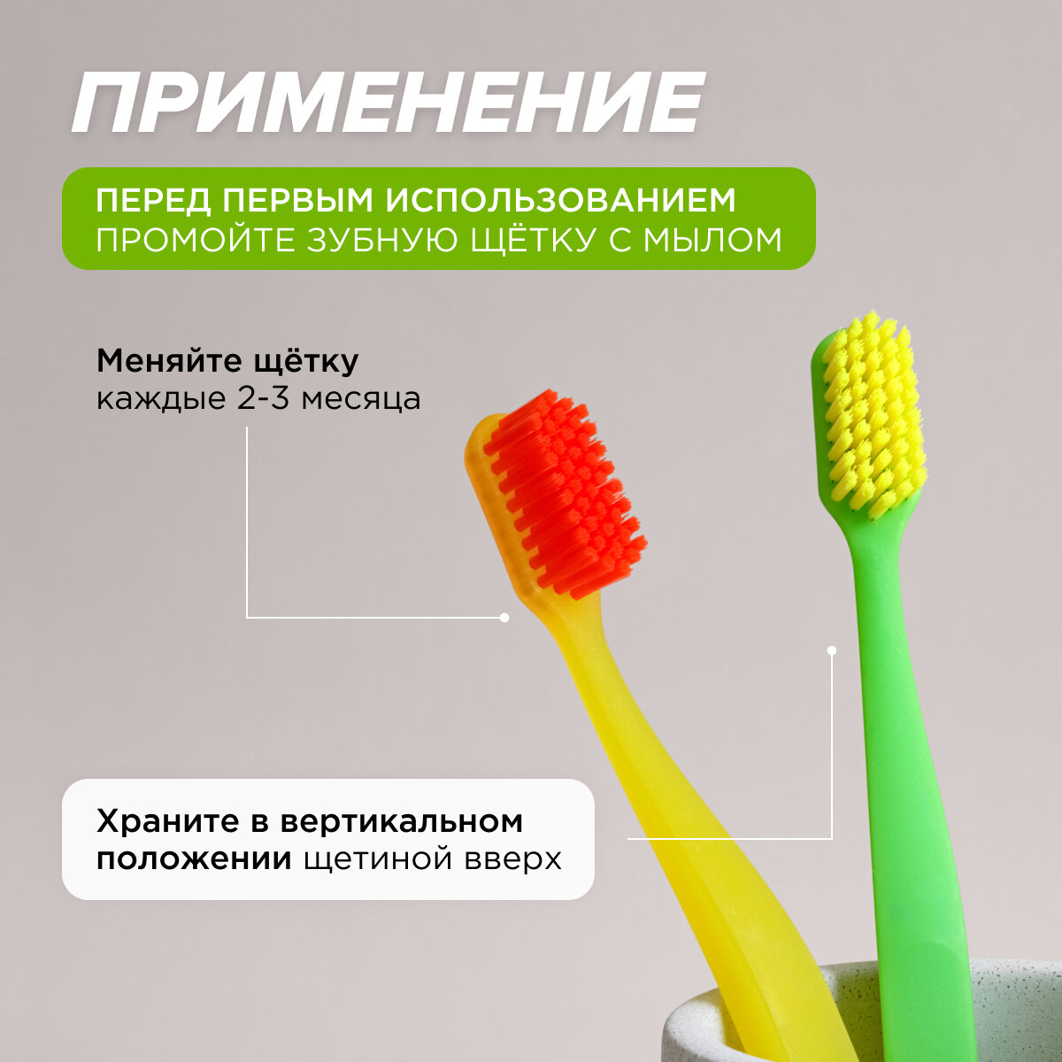 | Дополнительная информация | перед применением новую зубную щётку промыть в тёплой воде с мылом, хранить щётку в вертикальном положении щетиной вверх, рекомендуемый срок использования: 2–3 месяца |