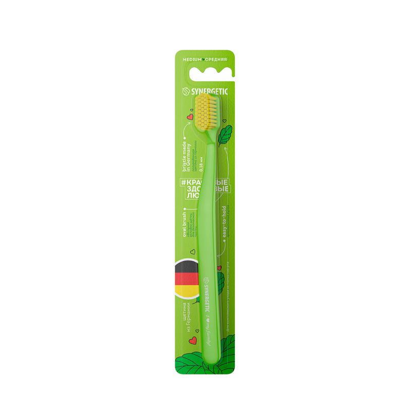 Зубная щетка Synergetic JBrush, для взрослых, средняя жесткость, пластик, желтая