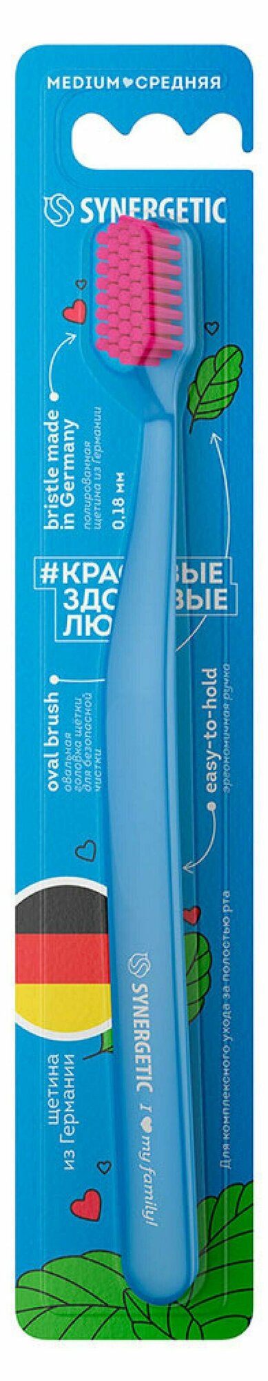 Зубная щетка для взрослых Synergetic средней жёсткости + детская зубная щетка от 3 до 6 лет мягкая розовая