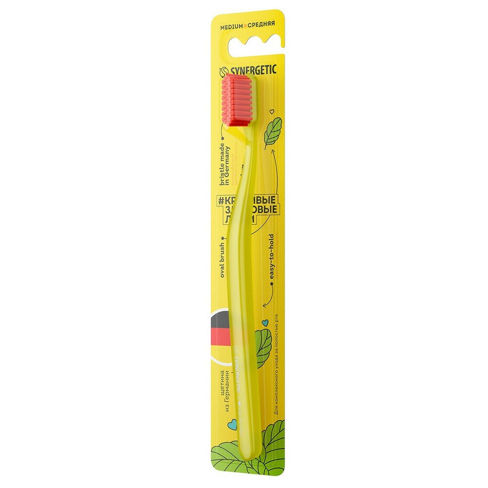 Зубная щетка Synergetic JBrush, для взрослых, средняя жесткость, пластик, желтая