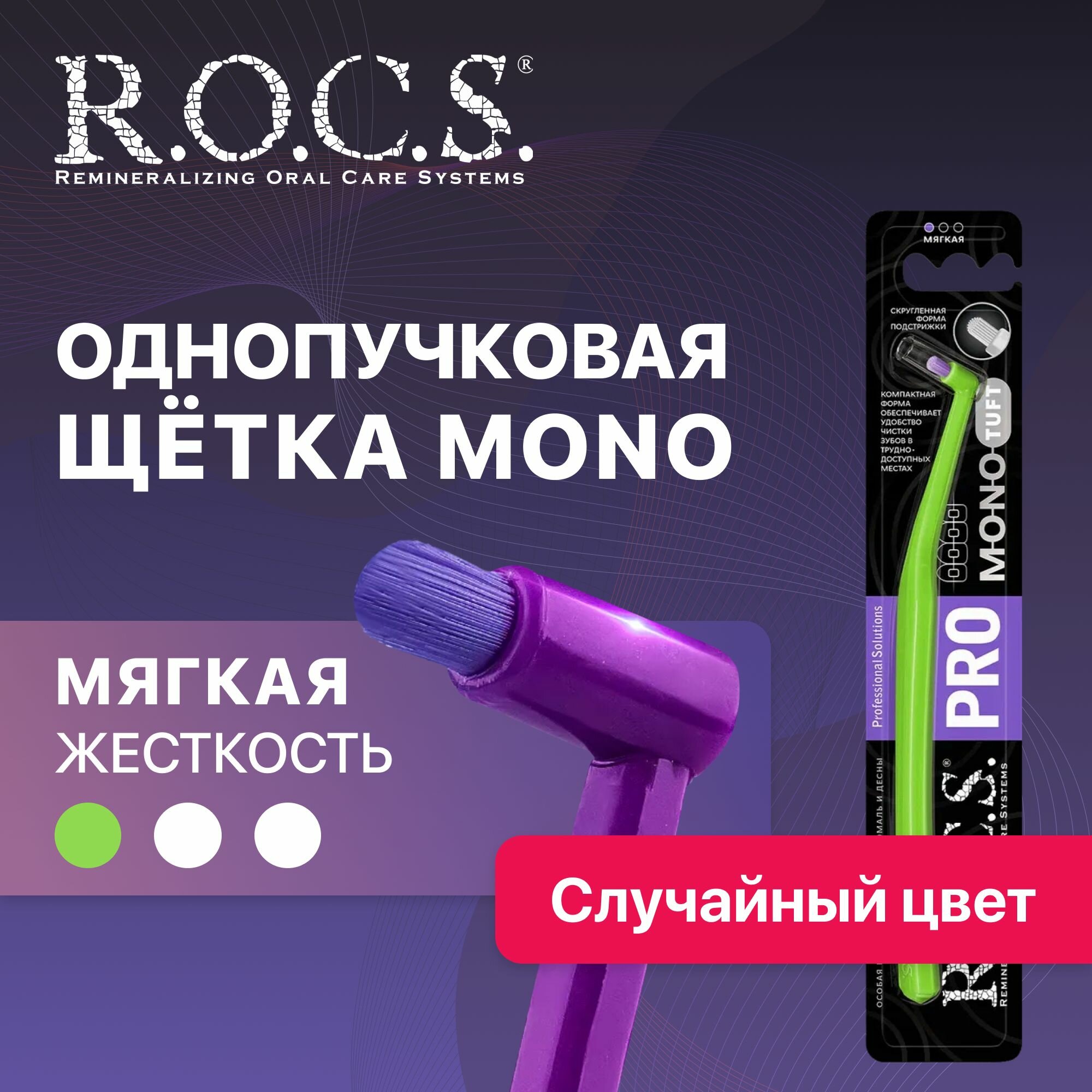 Монопучковая зубная щетка R.O.C.S. PRO Mono, мягкая, в ассортименте интересное: