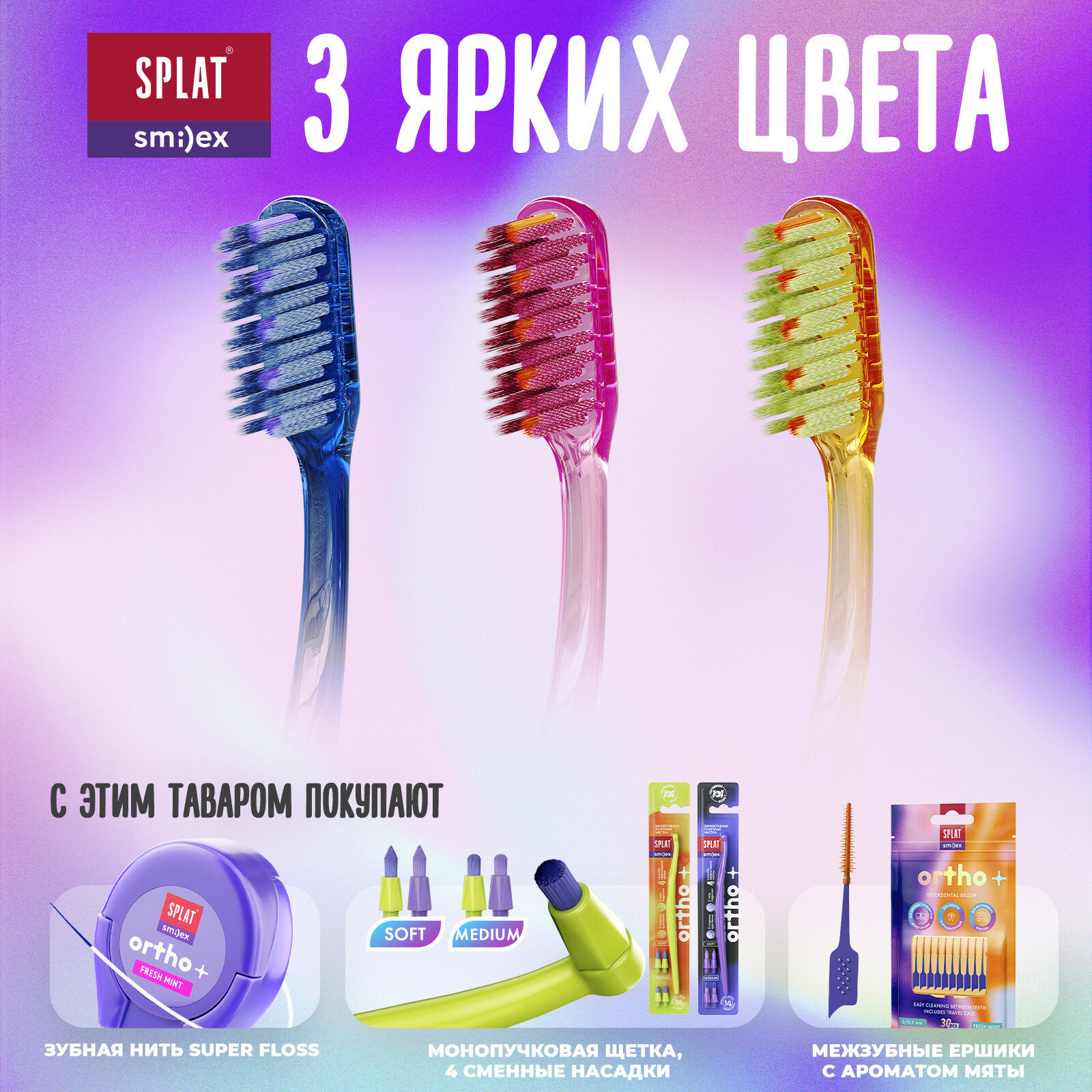 SPLAT SMILEX ORTHO+ Soft ортодонтическая зубная щетка (Синий) интересное: