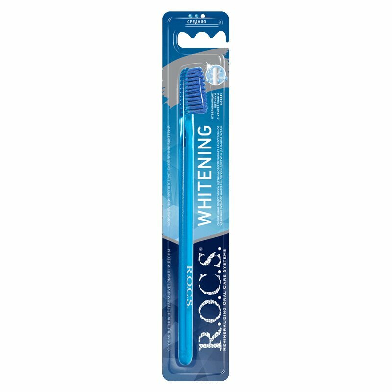 Зубная щетка R.O.C.S. Отбеливающая средней жесткости, синяя
