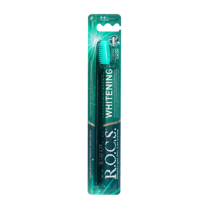 Зубная щетка R.O.C.S. WHITENING Отбеливающая, средняя жесткость, черная/черная