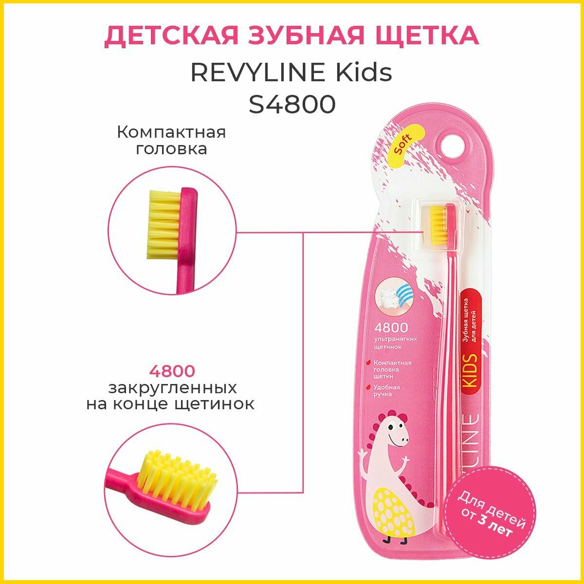 Детская мягкая зубная щетка Revyline Kids S4800, розовая(от 3 до 12 лет), Ревилайн