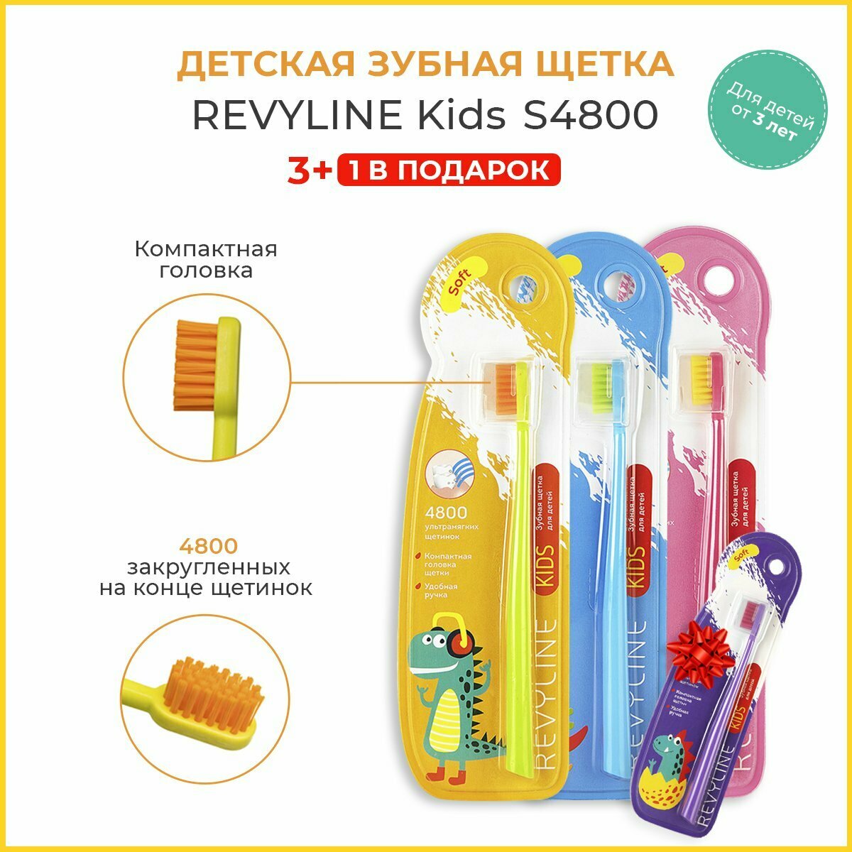 Купить Детская зубная щетка Revyline Kids S4800, 4 шт.