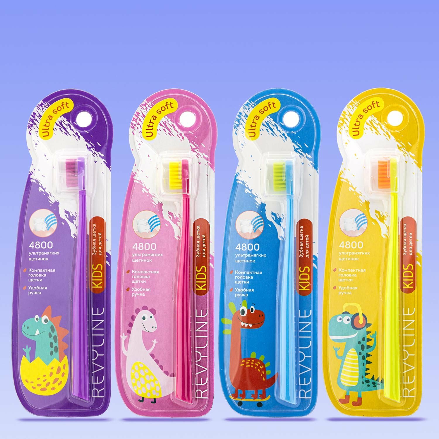 Детская зубная щетка Revyline "Kids S4800", 4шт, мягкая, пластик, разноцветная