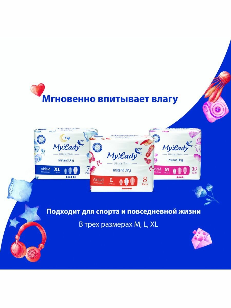 Купить Прокладки женские MY LADY ультратонкие дневные Instant Dry, размер L, 8 шт