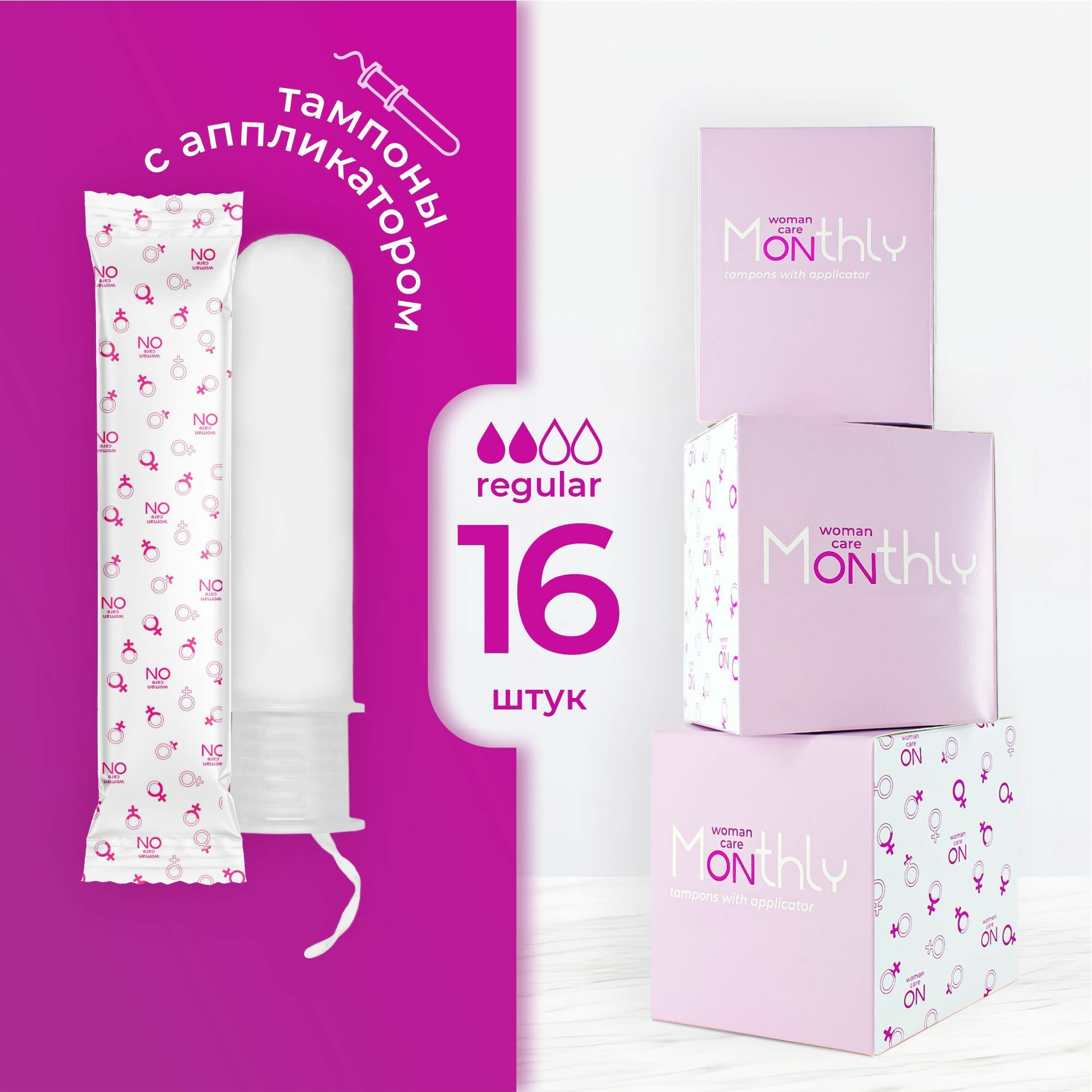 Тампоны женские гигиенические Monthly Compact Regular с аппликатором, 16 шт интересное:
